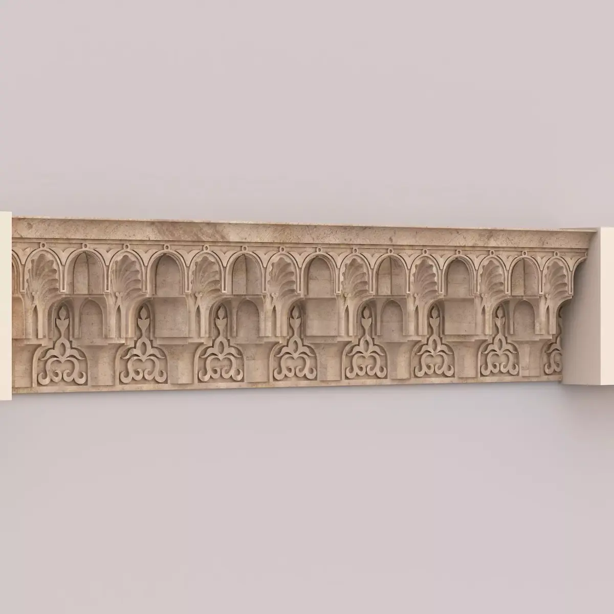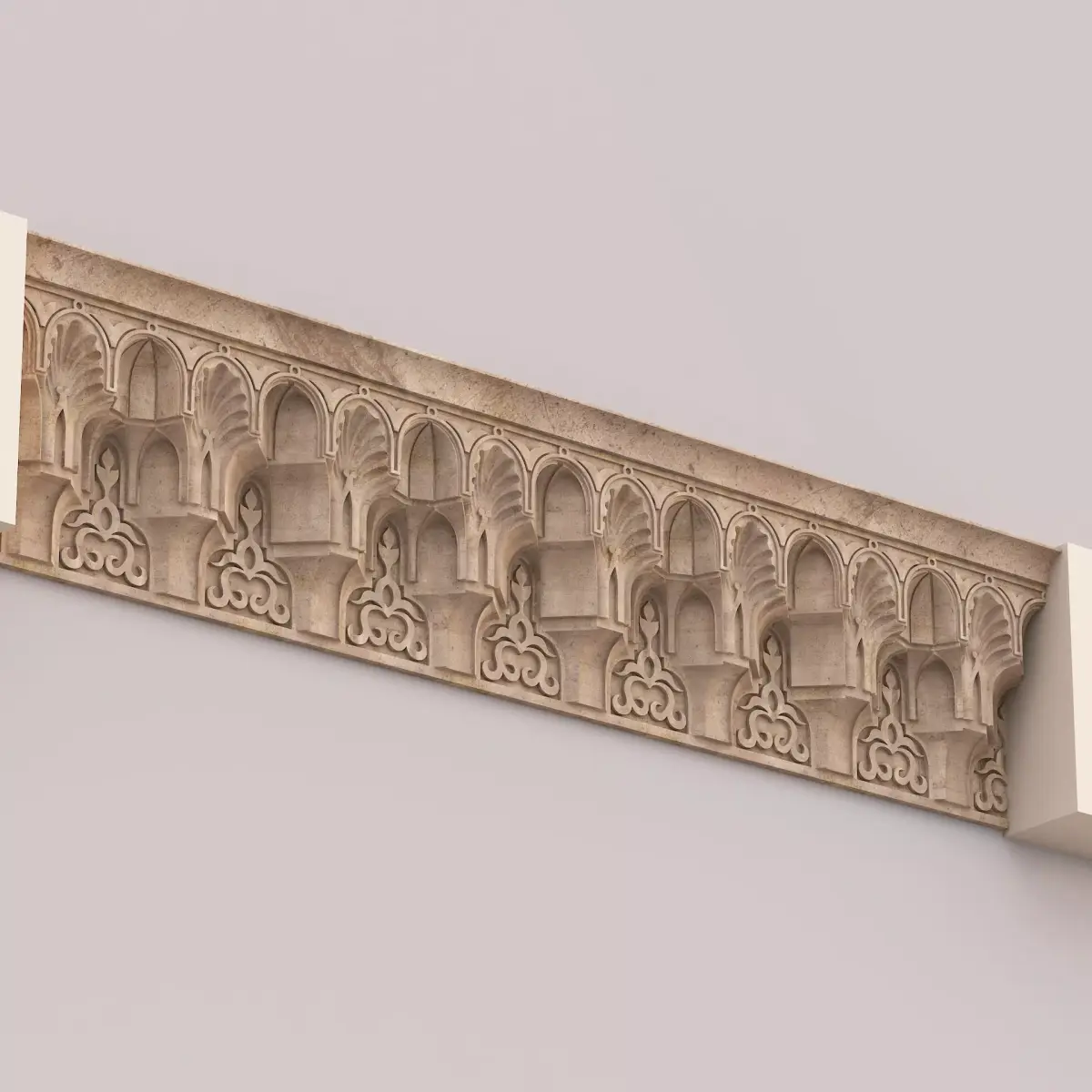 Classic Islamic Muqarnas Cornice 0023ds max modeling3ds max 2024Vray 6Polygons: 83 497Vertices: 88 929Unwrapped: Fully unwrapped , non-overlappingFormat : FBX, OBJ, STLHeight: 45 cmLength: 16 cmWidth: 206 cmTextures:All textures are seamlessConcrete_Diffuse - JPG 4096x4096Concrete_Bump - JPG 4096x4096Dirt_Texture - PNG 2200x2200