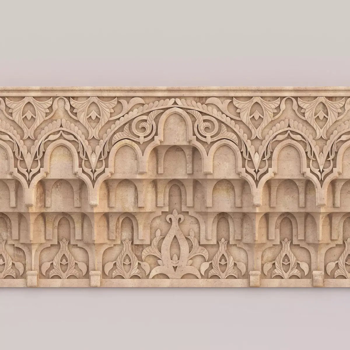 Classic Islamic Muqarnas Cornice 0033ds max modeling3ds max 2024Vray 6Polygons: 233 272Vertices: 246 332Unwrapped: Fully unwrapped , non-overlappingFormat : FBX, OBJ, STLHeight: 70 cmLength: 12 cmWidth: 200 cmTextures:All textures are seamlessConcrete_Diffuse - JPG 4096x4096Concrete_Bump - JPG 4096x4096Dirt_Texture - PNG 2200x2200