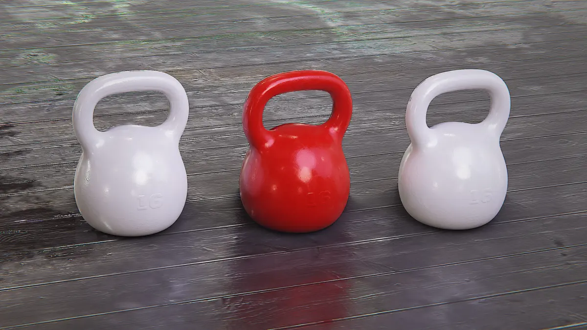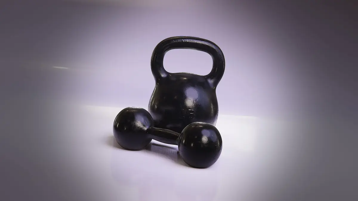 Classic realistic simple-shaped kettlebell and dumbbell textured 3d models.