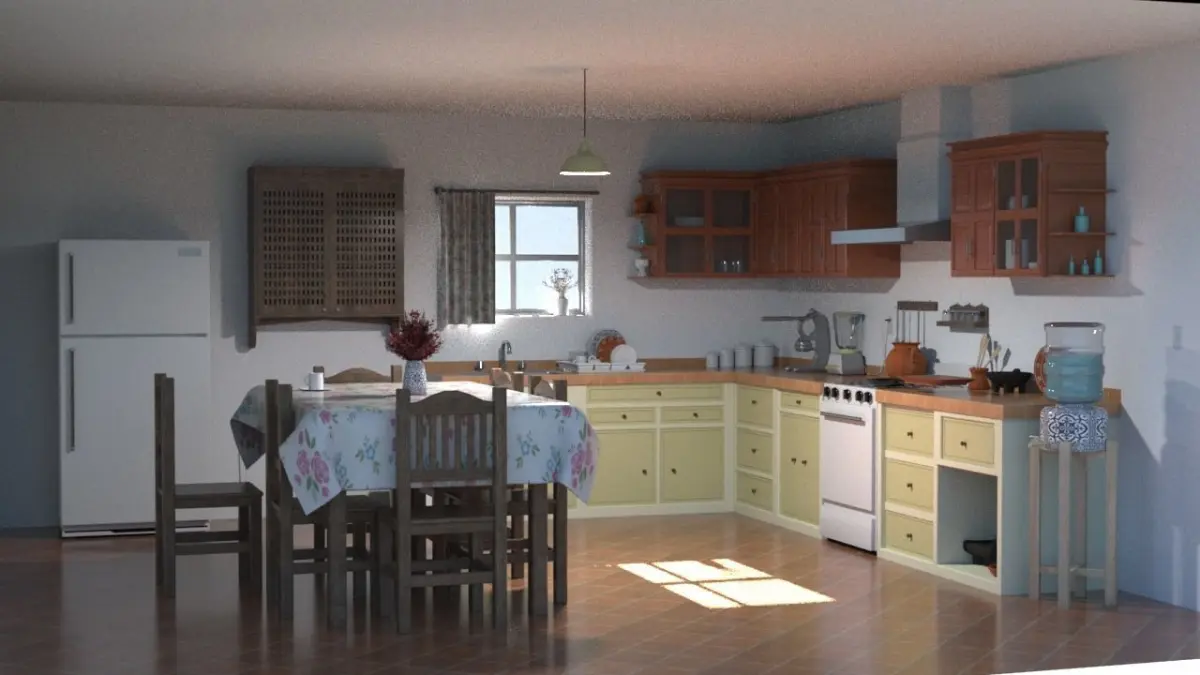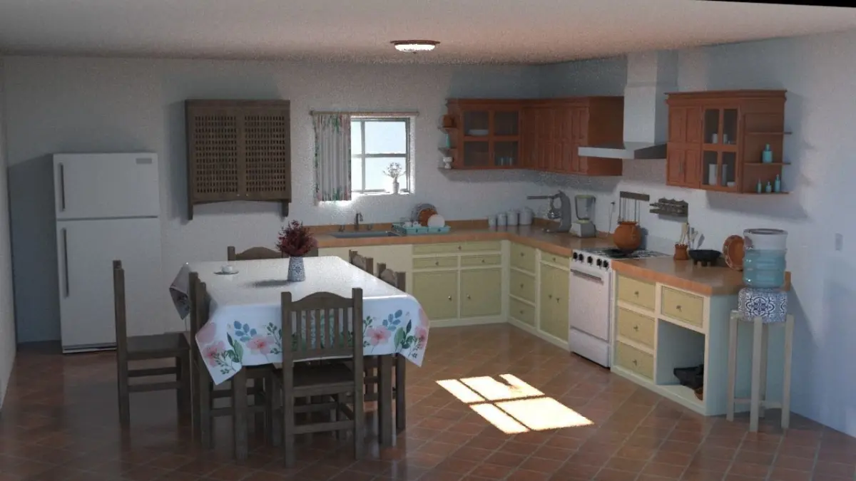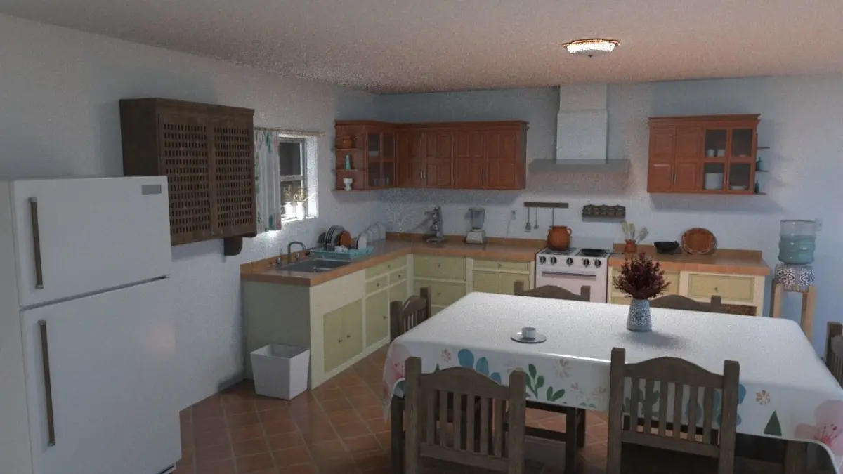 Realistic scene of a contemporary (Mexican) kitchen, with elements that are commonly used, materials, textures according to each object, to give the realism that this scene requires. Each asset has its UVM, materials and textures properly assigned for adaptation to your project environment. This package includes the following assets for manipulation within this scene or as required to be used:It has details in each element and real dimension for its interaction, they are properly located according to their function and arrangement, the basic elements of a common kitchen were integrated.
