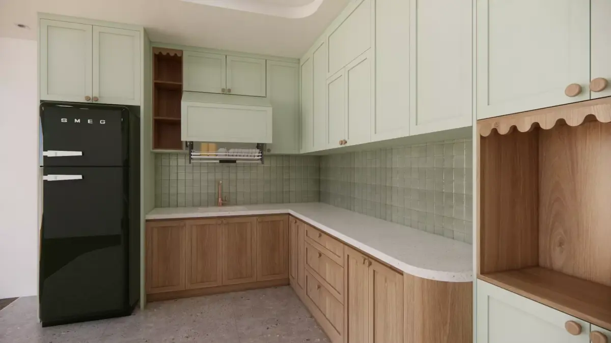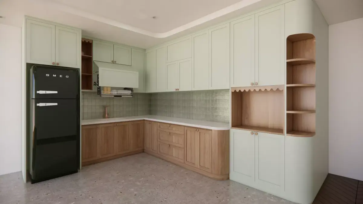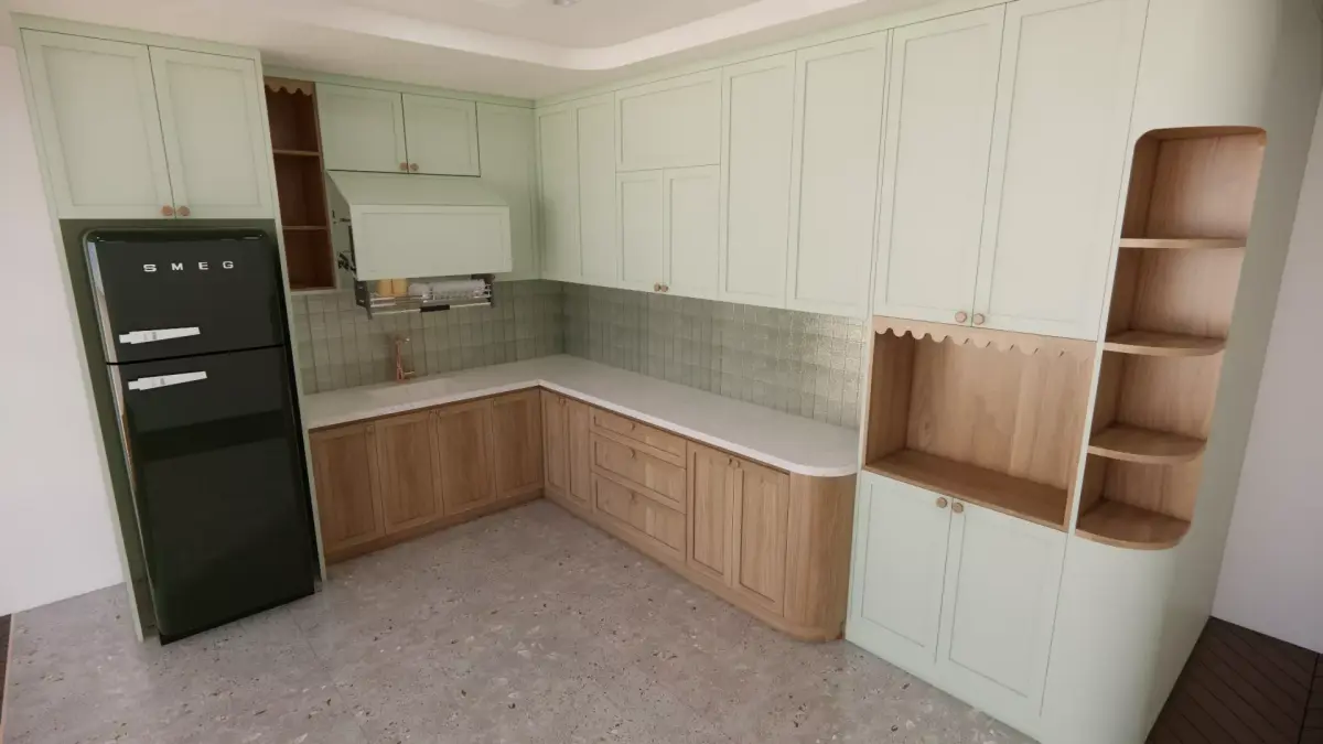 This Classic L Shape Kitchen Cabinet SketchUp model features a soft pastel green and warm wood combination, inspired by modern classic and Scandinavian interior styles.The layout is optimized for small to medium kitchens, offering efficient storage while maintaining a clean and elegant appearance. Rounded corners, classic panel doors, and open shelf details add realism and character to the design.This model is ideal for:Interior designersArchitects3D visualization artistsReal estate presentation projectsDesigned to match and complement other classic kitchen models in the same collection, making it easy to build a complete kitchen set.Unit mmFile Sketchup, OBJ, FBXImportant Notice:The refrigerator, kitchen appliances, dish rack, decorative accessories, tableware, and other props shown in the render images are for presentation purposes only and are NOT included in the downloadable files.Only the kitchen cabinet furniture model is included.The cabinet layout is optimized for residential interiors, suitable for modern classic and Scandinavian-style kitchens. Clean geometry and realistic proportions make it easy to customize for different projects.This model is created to match other classic kitchen cabinet models in the same collection for consistent design across multiple scenes.FEATURESKitchen cabinet furniture onlyAppliances and decor NOT includedClean geometry and organized groupsReal world scaleEasy to modify materials and layoutOptimized for interior visualization