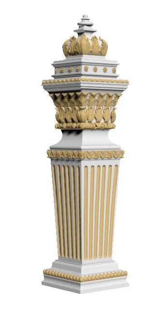 Classic ladder pillar, an entrance hall with a majestic classic staircase with wrought iron rails , chandeliers and a circular ionic designed arcsades .