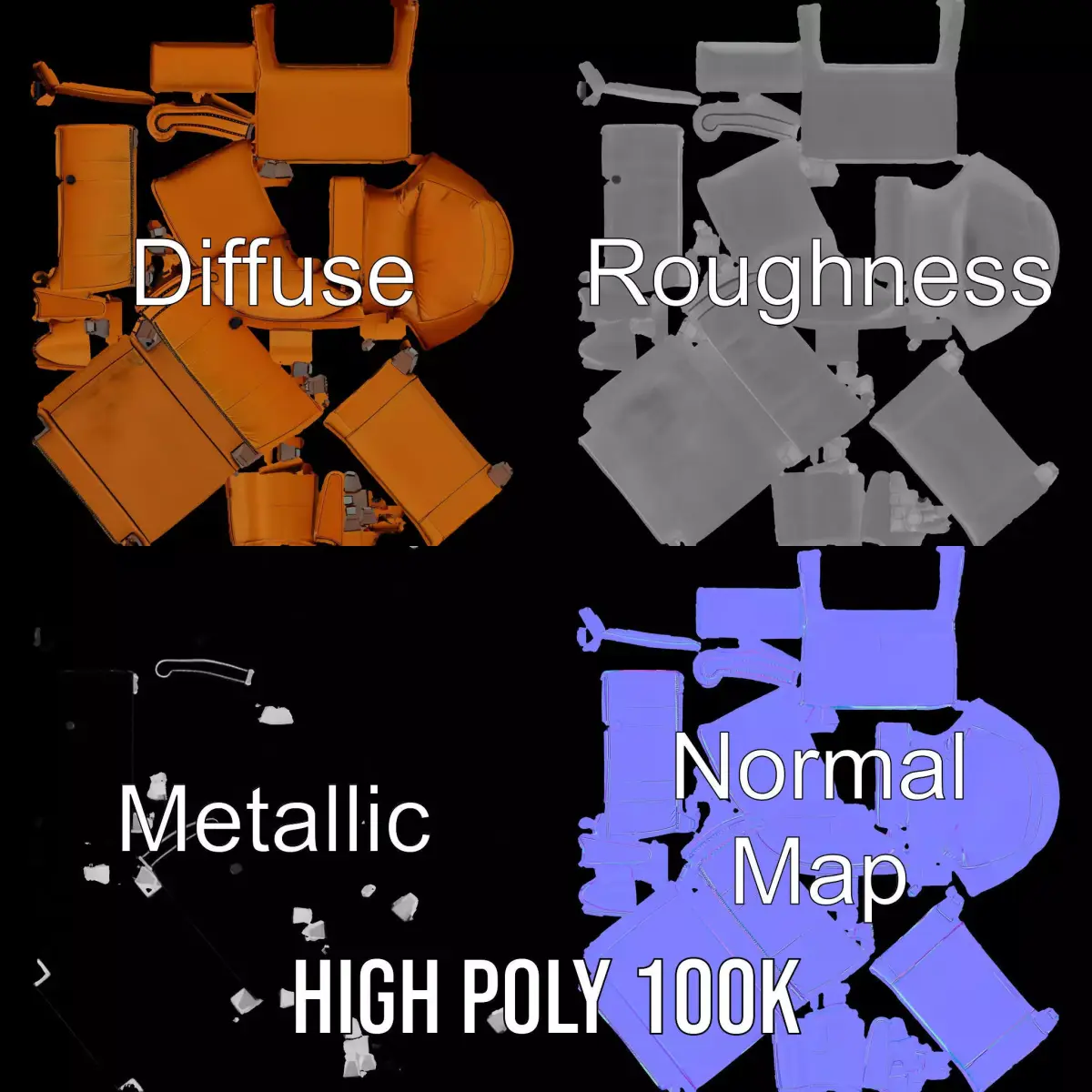 The model's textures are PBR, Diffuse, NormalMap, and reflection/roughness/metallic, which are suitable for any modern rendering engine. All models are accurately unwrapped and have no overlapping UVs, with textures sized at 4096x4096. If you enjoy this model, please like and leave a comment.