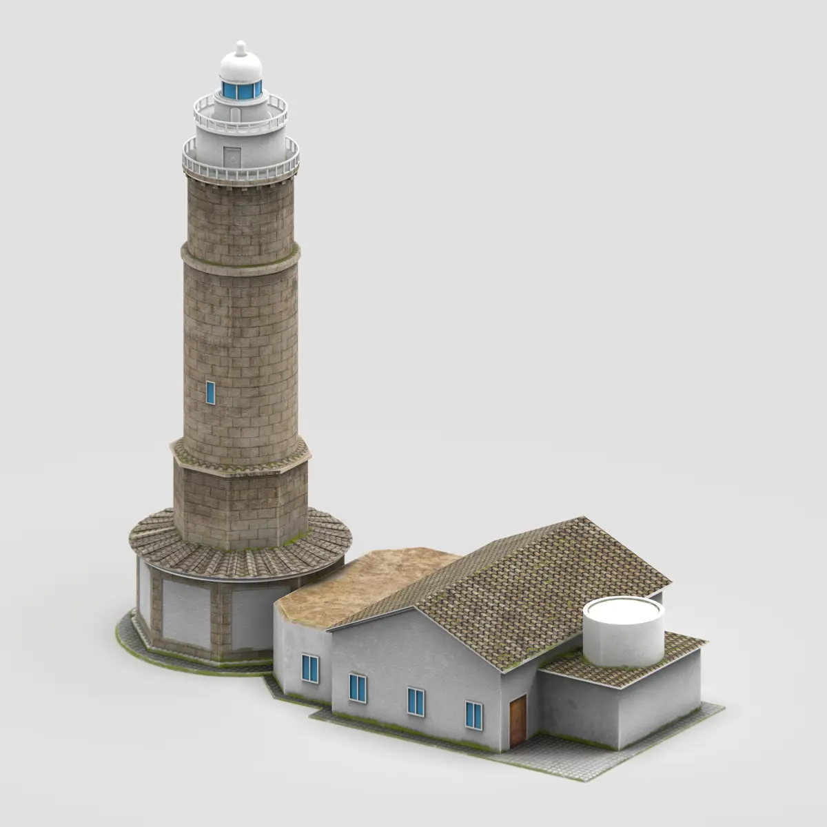 High-quality 3D model of a classic lighthouse with a keeper’s house, designed with realistic details and PBR textures.