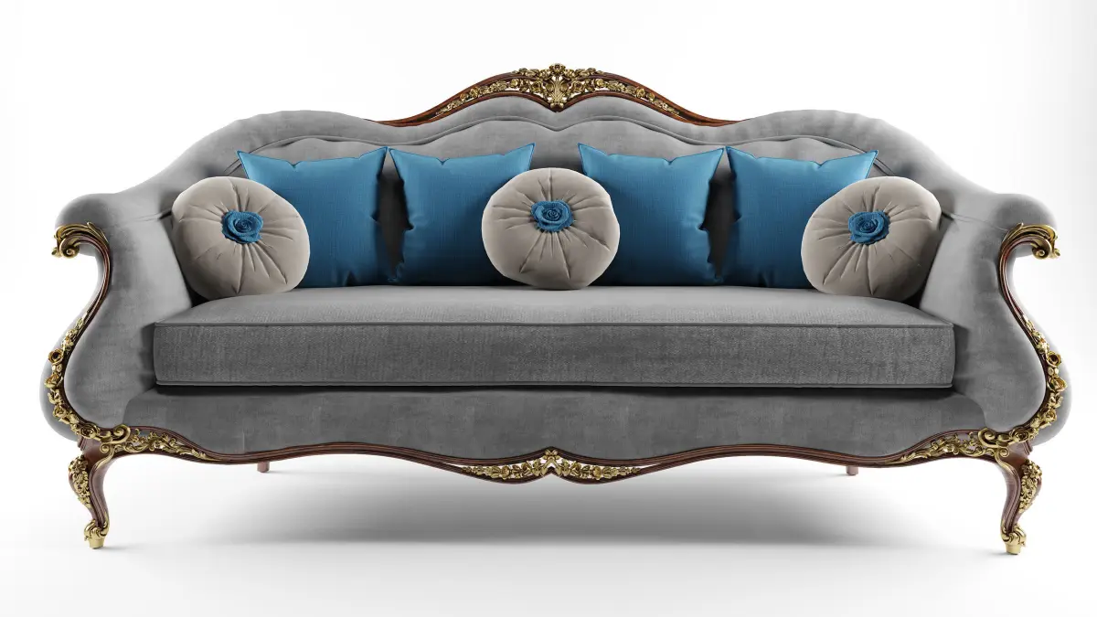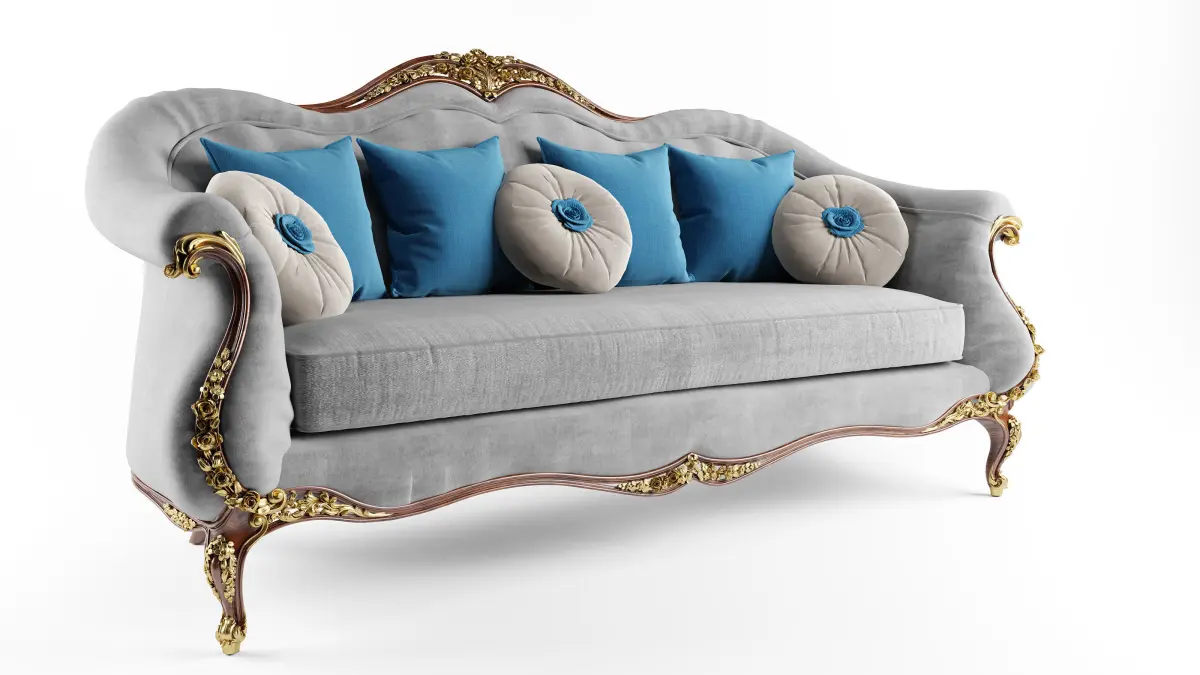 This is a collection of 3D models of some Victorian living room furniture. A sofa, armchairs, coffee table, decorated lamp, table lamp, rug. Textures are in PNG format in 2K