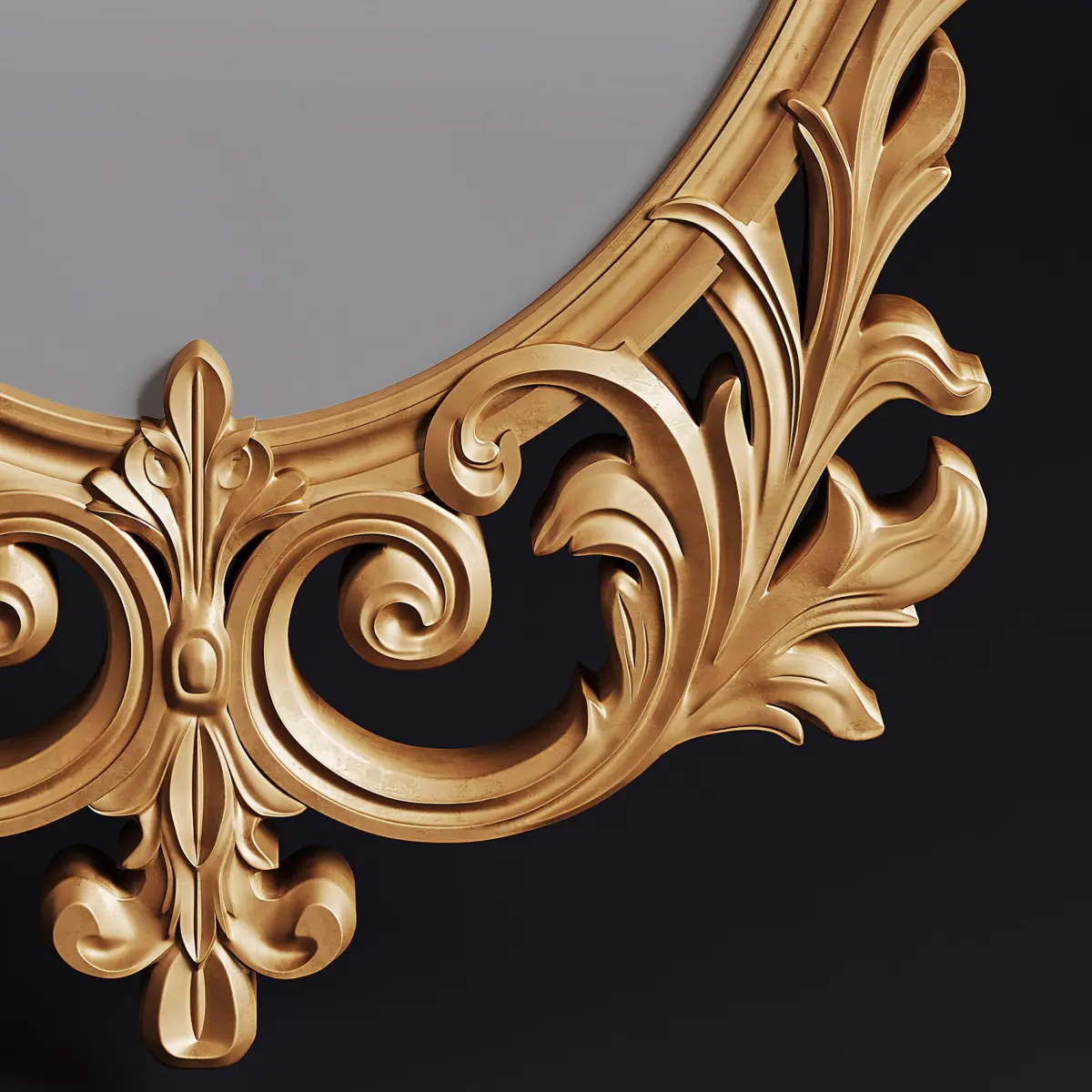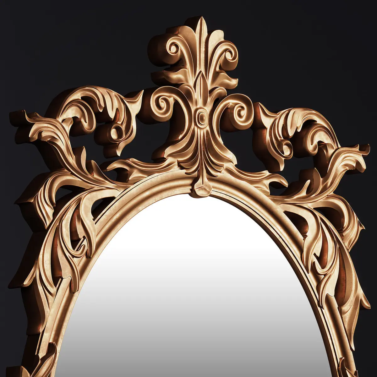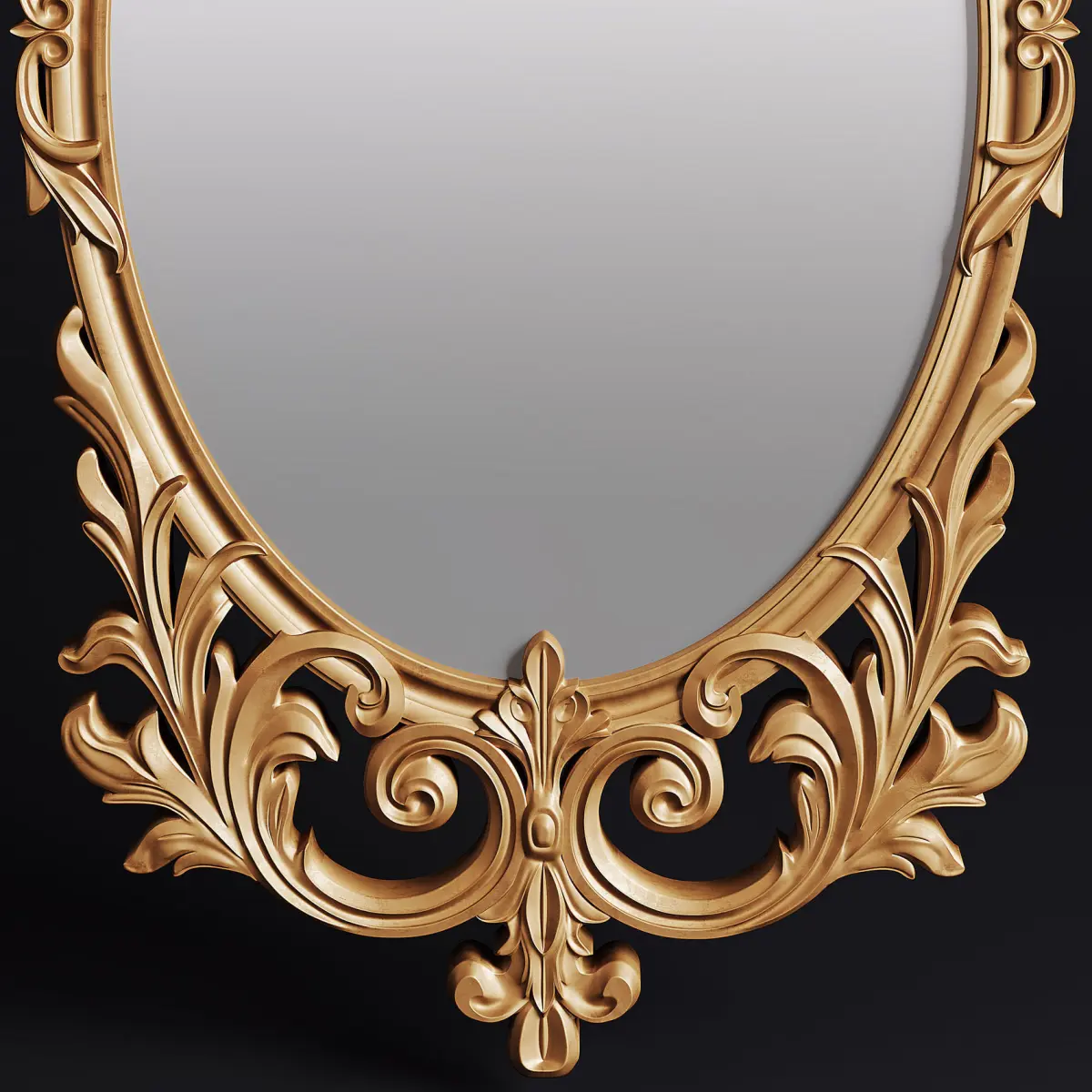 Classic mirrorHighly detailed and sculpted mirror. It is offered in two different colors, golden and brown wood. It can be used in classic and neo-classic style scenes.