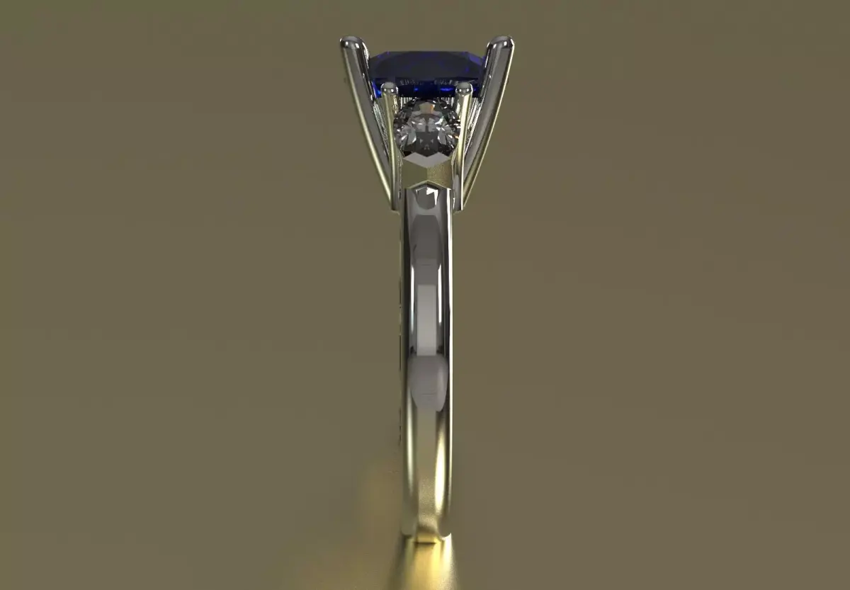 Shank Shape: The shank of the ring is a Simple, Polished, Slightly Tapered Band that widens slightly near the top to support the weight of the stones.