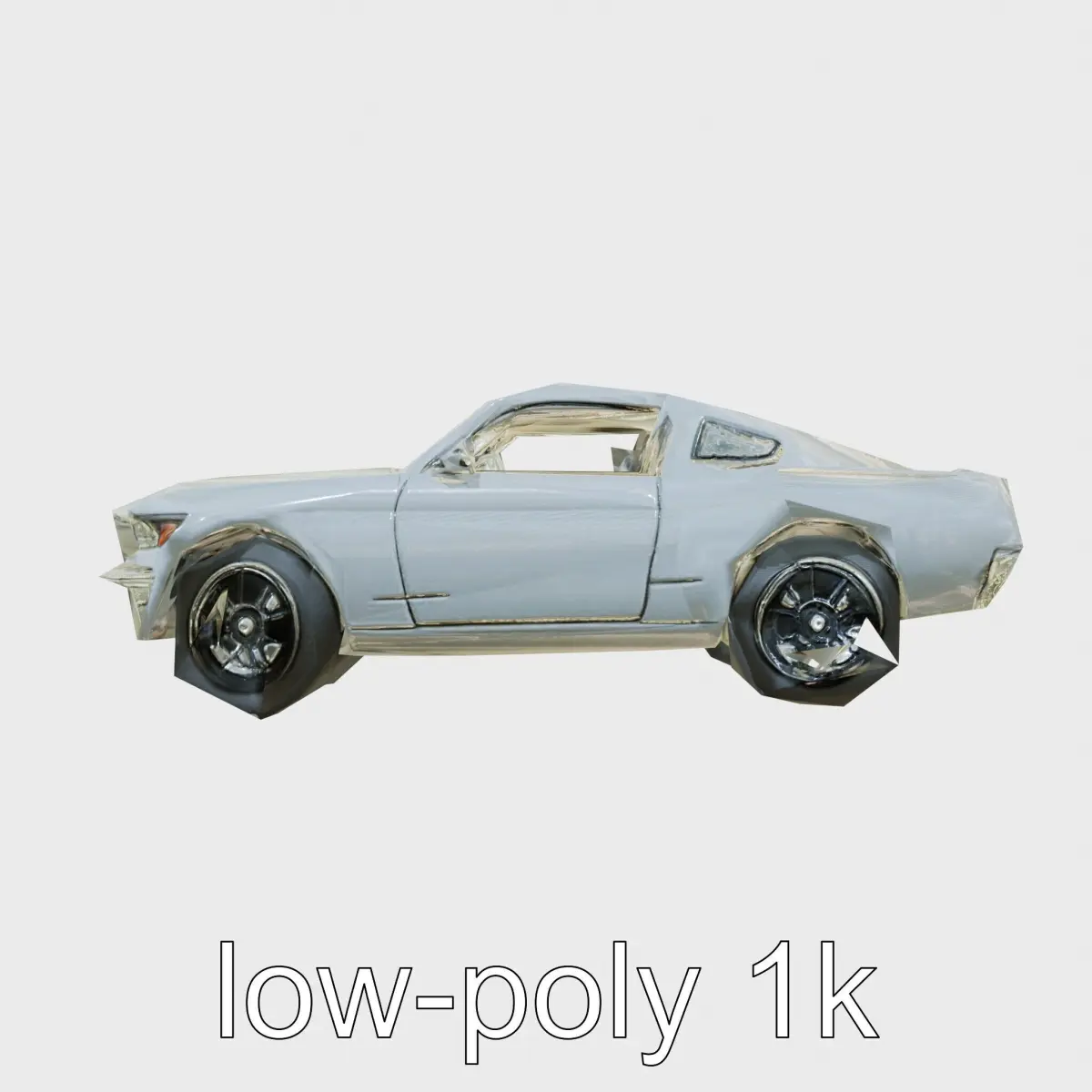This 3D model of a classic Mustang car captures the wild spirit and diverse heritage of the vehicle. Its three levels of detail—low-poly, middle-poly, and high-poly—are designed for versatile use, making it suitable for production rendering, game engines, and interactive presentations.