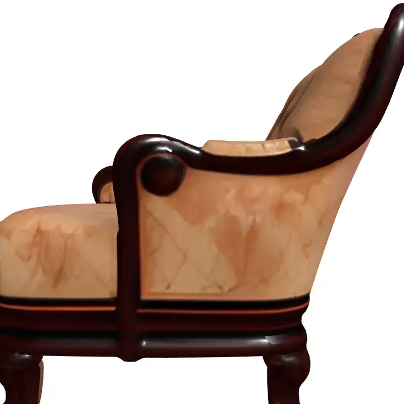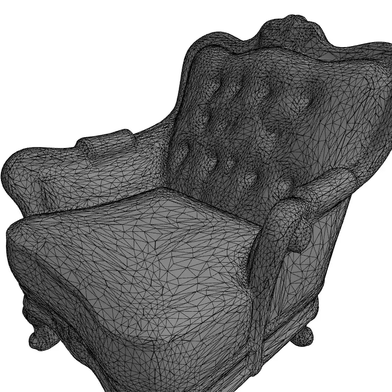 This exquisite 3D model presents a classic ornate armchair, meticulously crafted to bring a touch of vintage elegance to any digital environment. Featuring a richly detailed dark wooden frame adorned with intricate carvings, including a decorative crest on the backrest and sculpted legs, this piece exudes historical charm. The plush upholstery, rendered in a warm, patterned fabric, is beautifully button-tufted on the backrest, enhancing its luxurious appeal. Decorative nailhead trim meticulously follows the contours of the frame, adding a refined finish. This model is ideal for high-quality architectural visualizations, interior design projects, virtual staging, film and animation, or creating immersive AR/VR experiences. Its high level of detail makes it perfect for close-up renders and static scenes where visual fidelity is paramount. While optimized for realistic rendering, the clean topology also allows for potential use in real-time applications with appropriate polygon reduction and LODs. The model is fully UV unwrapped and includes high-resolution PBR textures to ensure stunning visual accuracy. It is provided in various industry-standard formats, including GLB, OBJ, FBX, DAE, and USD, offering broad compatibility across different 3D software and engines. Integrate this timeless armchair into your projects to elevate their aesthetic and historical depth.