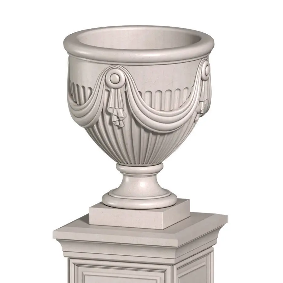 Outdoor vase in classic style for exterior decoration of the facade of a building in light stone