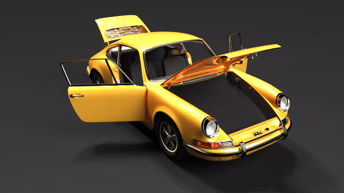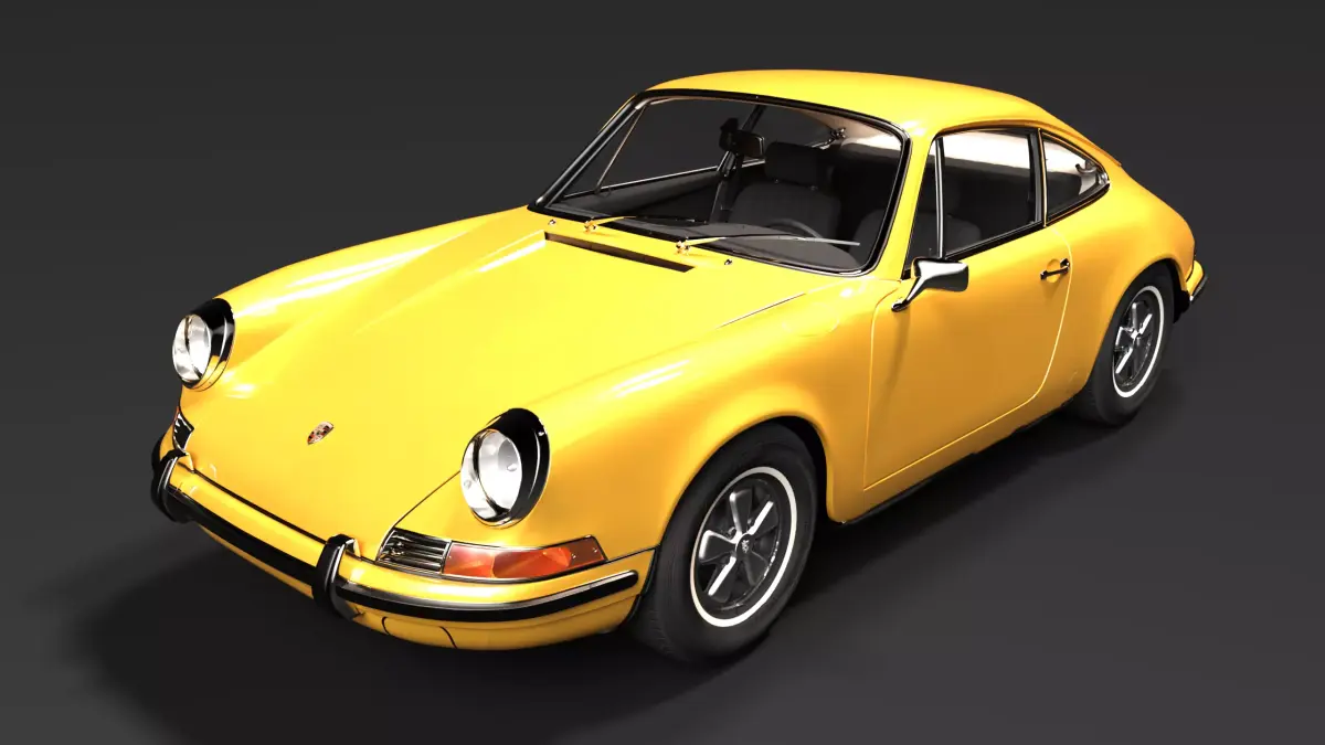 Acquire this meticulously crafted, high-detail 3D model of the legendary Classic Porsche 911 (likely representing an early 911 model from the late 1960s to early 1970s). Rendered in a striking Yellow finish, this model perfectly captures the timeless design and iconic curves of this vintage sports car, making it an essential asset for architectural visualizations, realistic racing games, cinematic sequences, or high-quality renders.