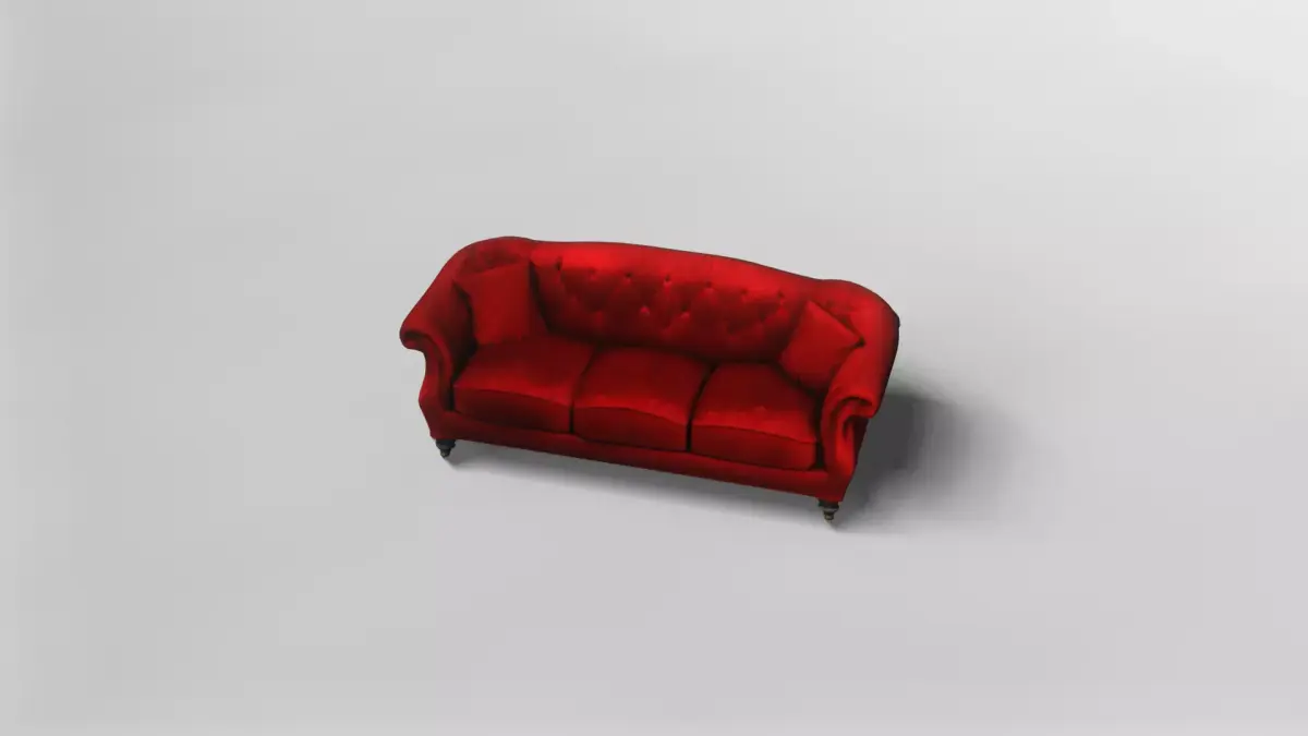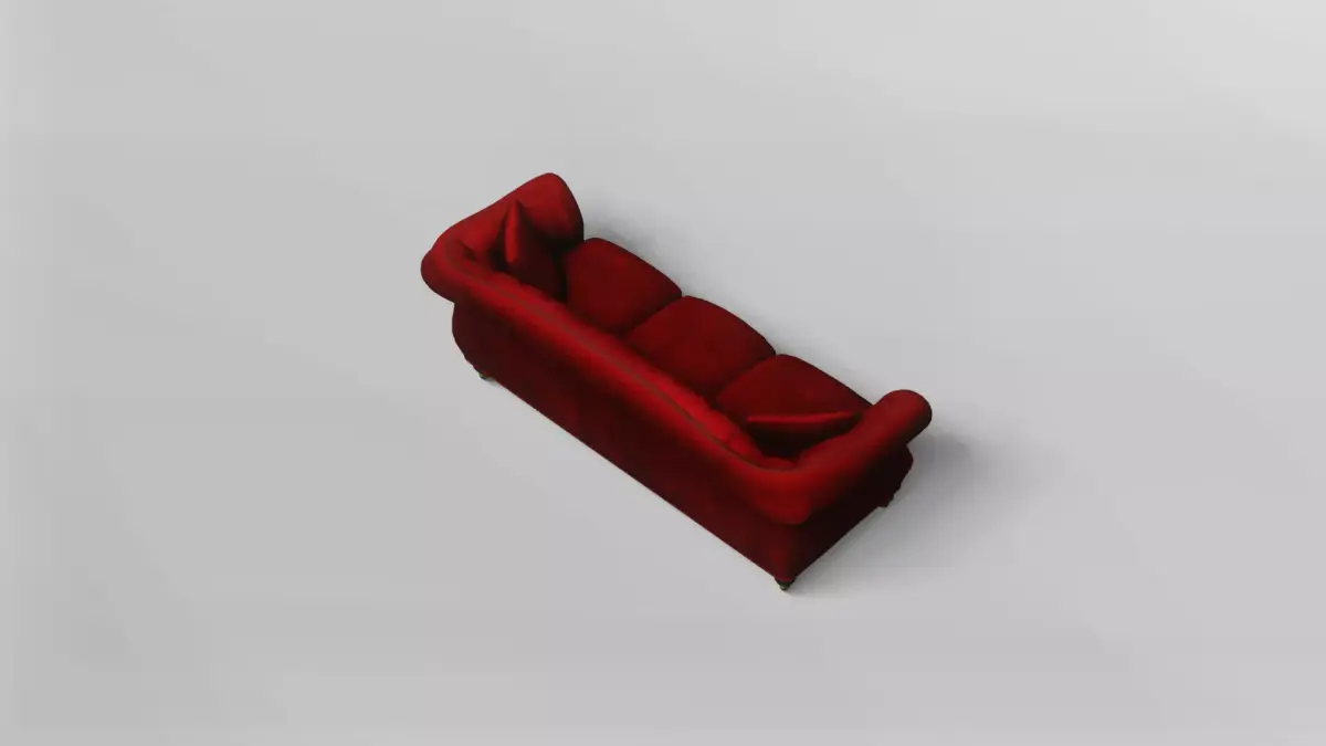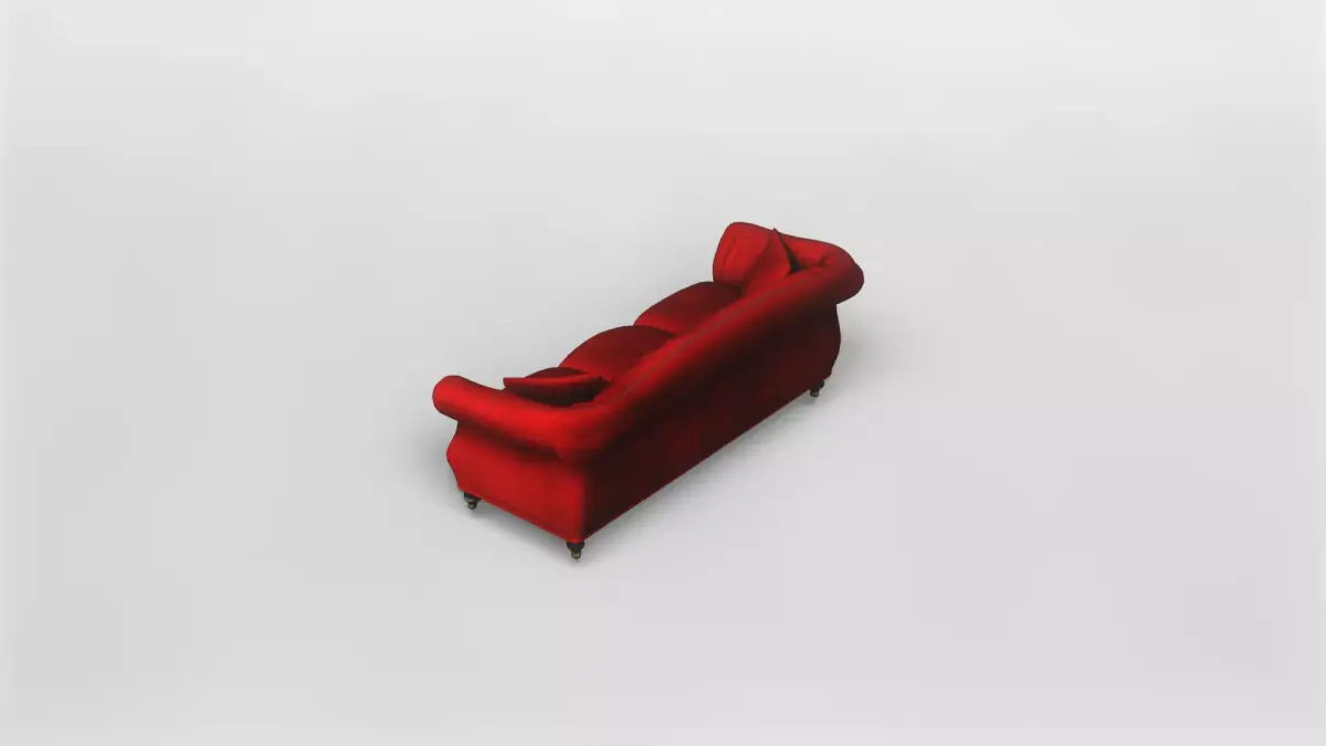 This classic red tufted sofa 3D model is designed with elegance and comfort in mind, featuring a timeless silhouette inspired by traditional upholstered furniture. The rolled armrests, gently curved backrest, and balanced proportions give the sofa a refined presence, making it suitable for both vintage-inspired interiors and modern scenes that require a bold accent piece.