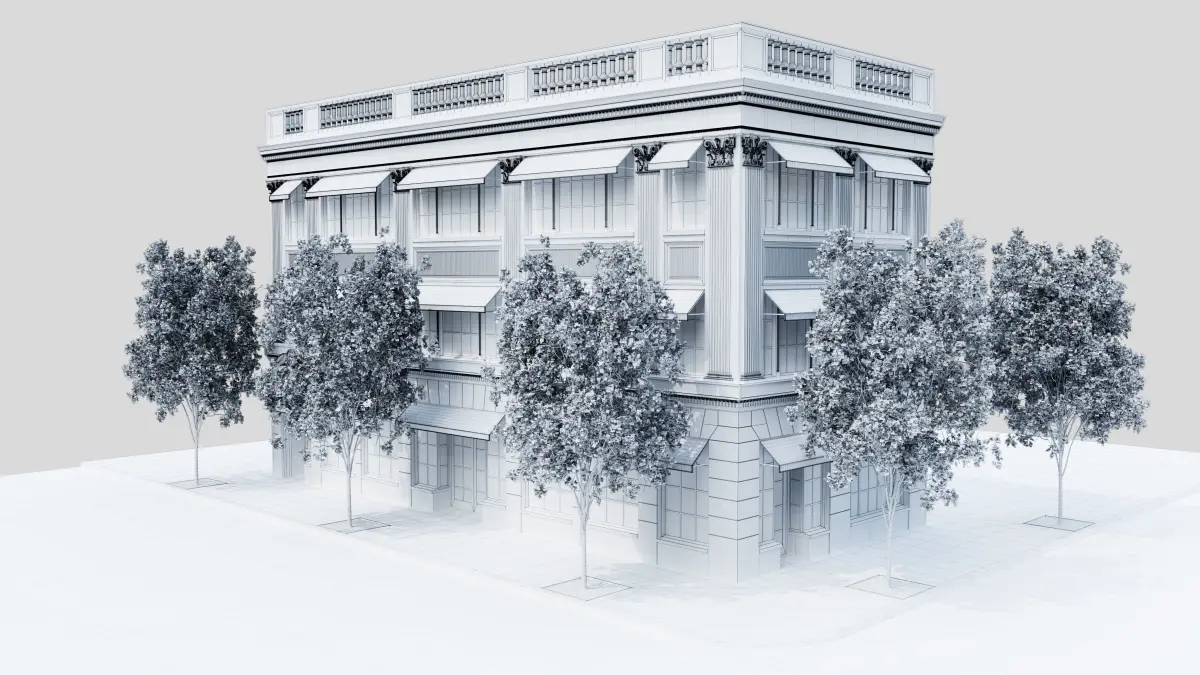 This is the perfect model to render an urban scene. You can also use it to integrate into your scenes to build a street or even a city. For these purposes, I exported some files without the trees.