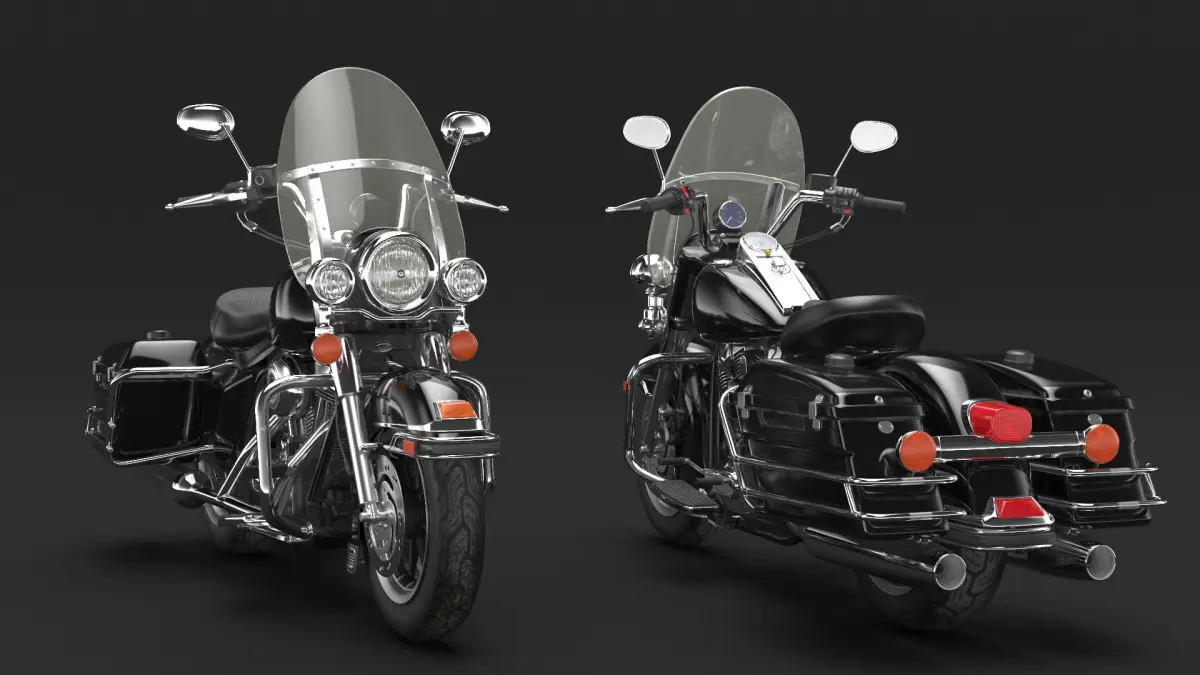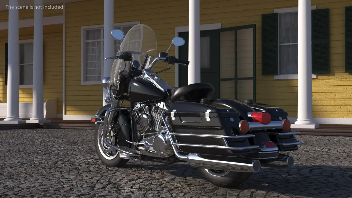 Classic Road King Motorcycle Black is a high quality, photo real 3d model that will enhance detail and realism to any of your rendering projects. The model has a fully textured, detailed design that allows for close-up renders, and was originally modeled in 3ds Max 2020 and rendered with V-Ray. Renders have no postprocessing!