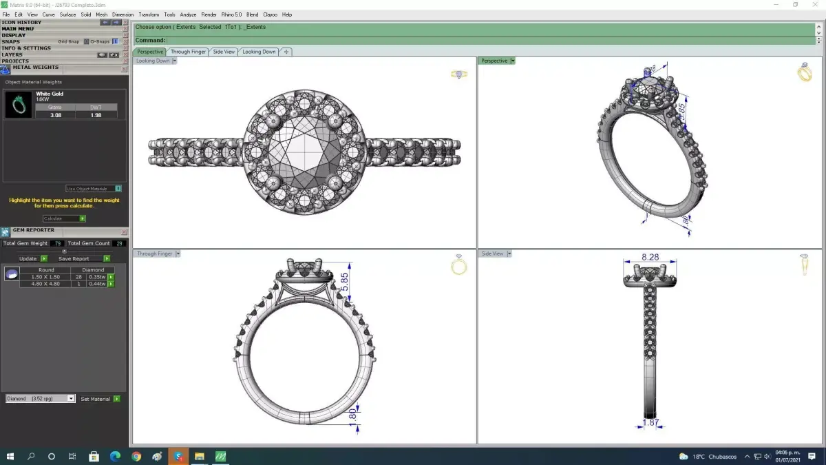 3dm file, gems & weight reports and realistic renderings are included.
