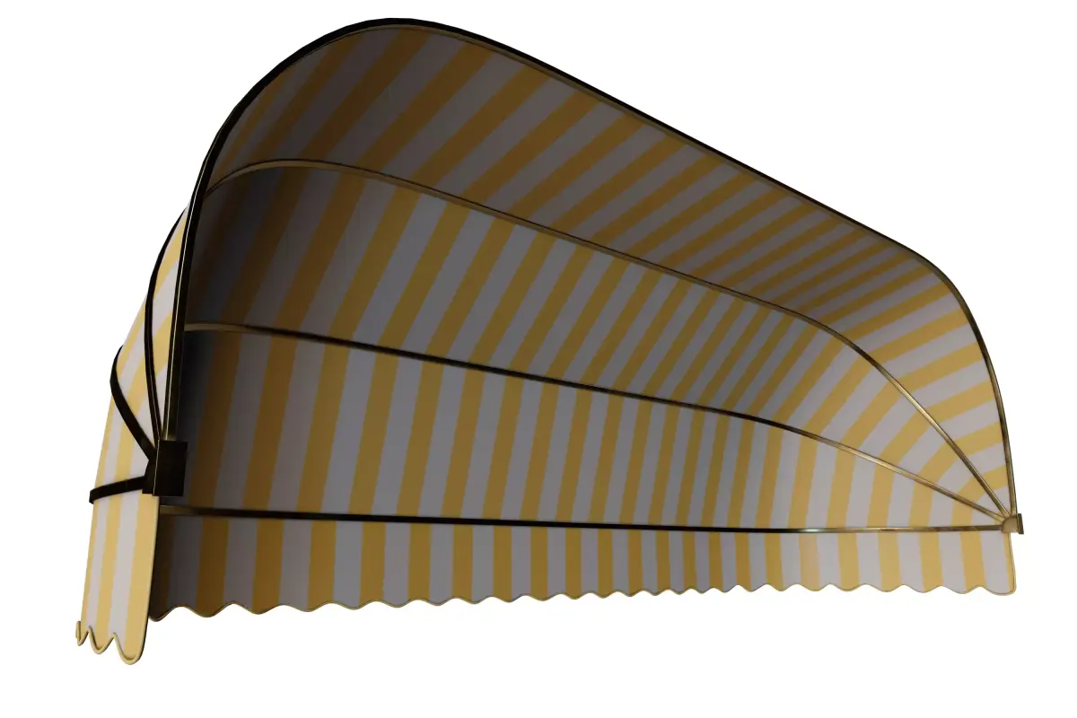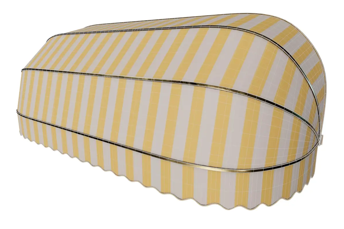 This is a high-quality PBR (Physically Based Rendering) 3D model of a classic rounded shop awning, perfect for adding a charming, commercial, or vintage touch to exterior architectural scenes. The awning features a pronounced curved shape, offering substantial coverage over a window or doorway.