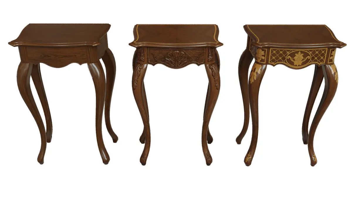 Classic side table3D Model of a classic console table made of solid wood.Well suited for classic interiors of living rooms, cabinets,billiard rooms, hallways. This high-quality model willContribute to the detail and realism of your games, movies