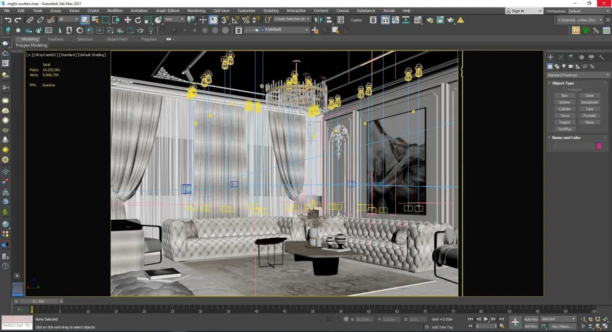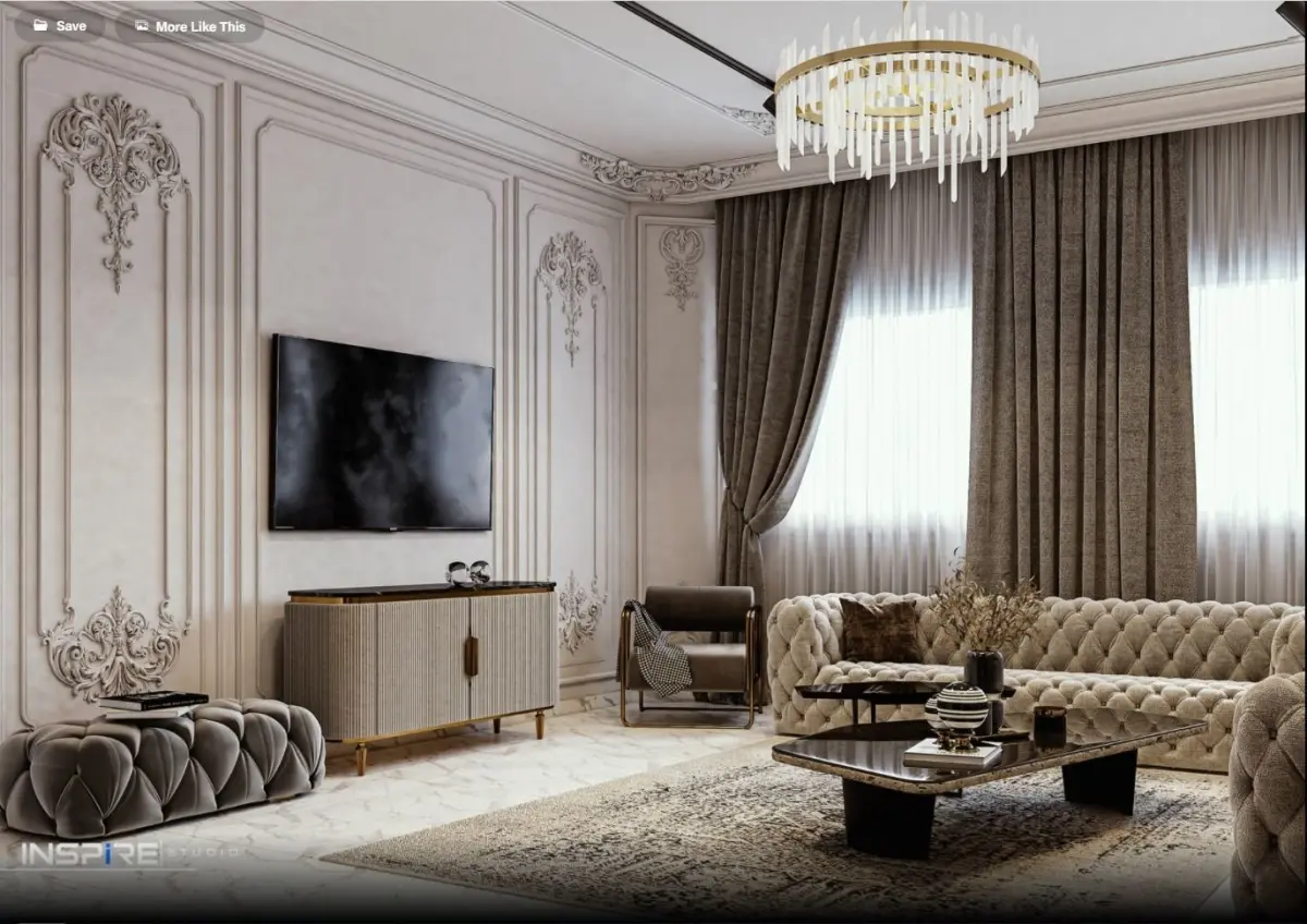 Classic Sitting Room , black and white Classic Majlis, i used 3ds max in modeling - vray materials , very clean modelling and materials all models i used in this scene pro models not free all materials are vray materials, its all pro furniture the file is ready to drop in any scene or any design you want just pick models from it and materials and use it in your design easily also you can use the scene light to improve your light system in render and get more reality vray materials this is a scpace for masteer bedroom with tv unit and small sitting sofa with moadrn touch