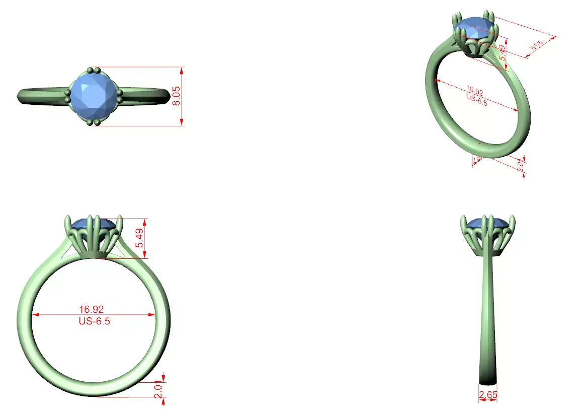 This classic solitaire diamond ring CAD model embodies timeless elegance and precise engineering tailored for professional jewellery production. Designed to emphasize the brilliance of the center gemstone, the ring maintains clean proportions and a refined silhouette suitable for engagement or fine jewellery collections.