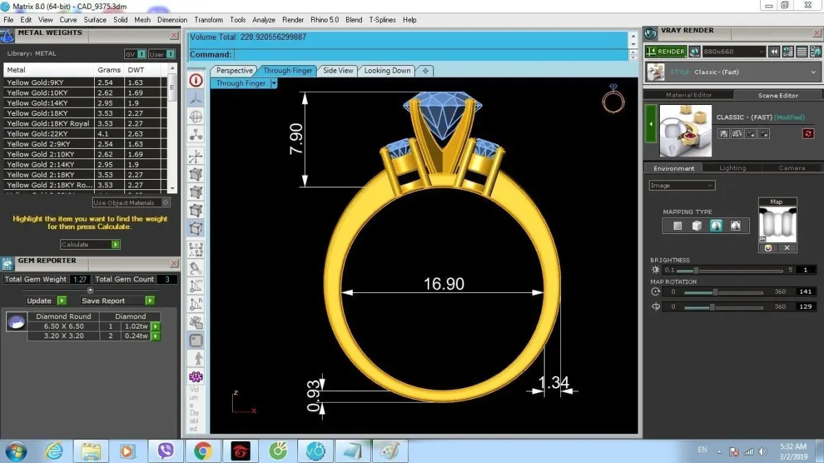 Preview images include full dimensions, ring size, estimated weight, and detailed stone layout to ensure accurate evaluation before manufacturing.