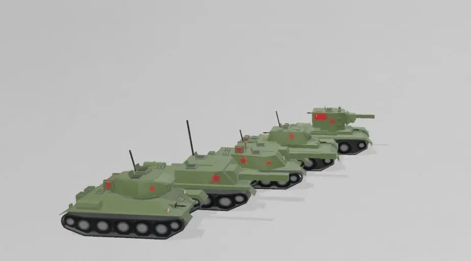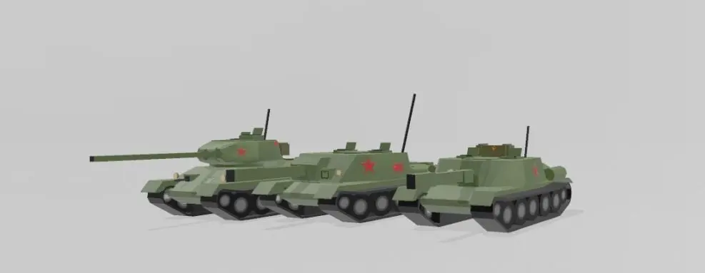 some classic soveit military vehicles for ww2 and the 1930s this pack has t-34-85 kv-1 kv-2 isu 152 su152 and the famous katyusha some aircraft yak-9 Ilyushin Il-2 Polikarpov I-16