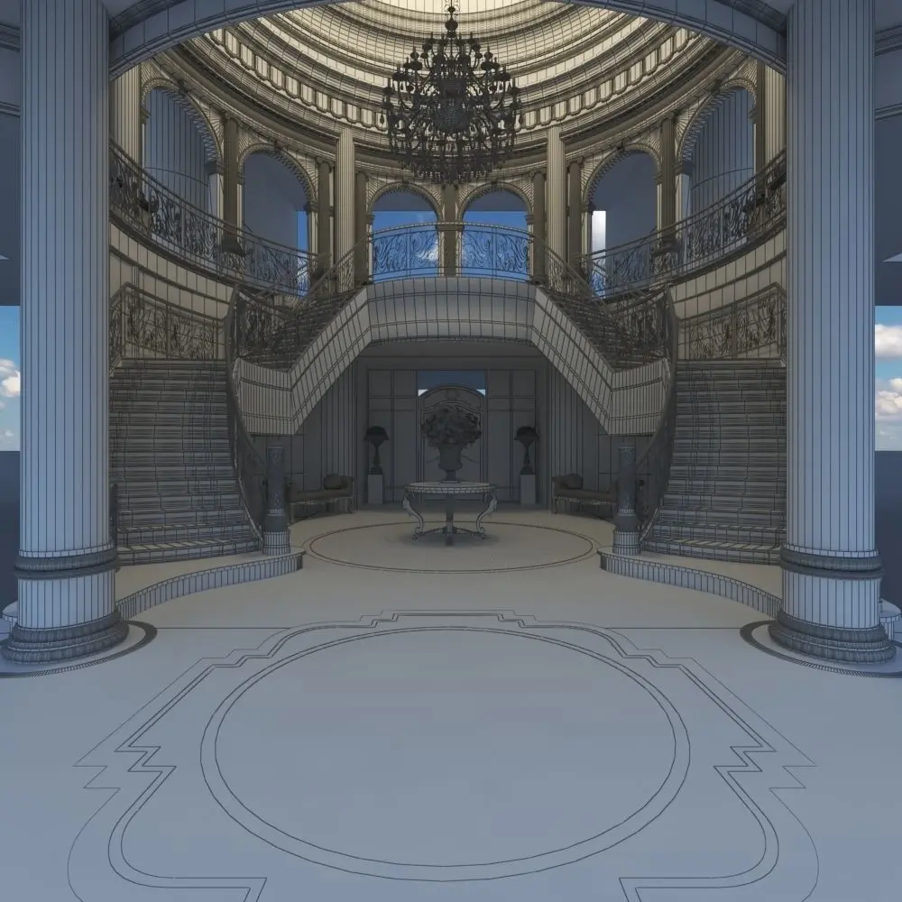 this scene is to integrate like an entrance hall for a manor project or a large scale classic villa .