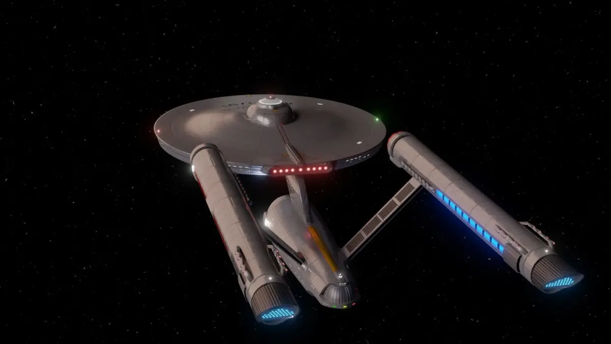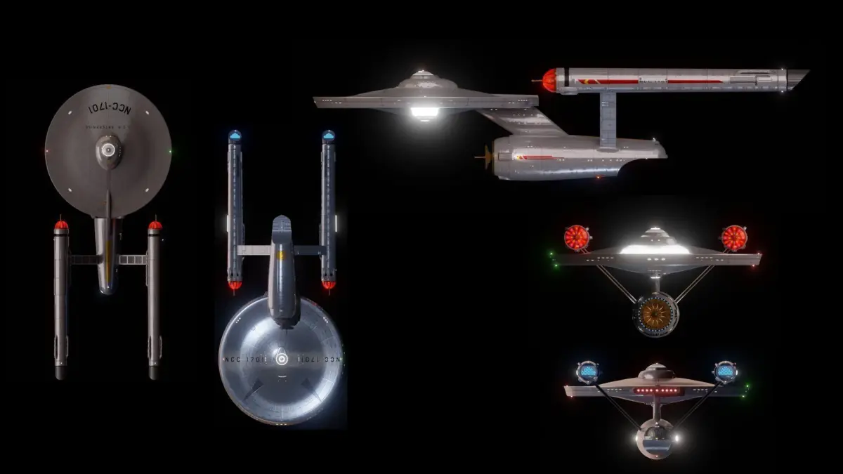 Orginal scene is in blender - animations are in the original file for blinkeys and the warp nacelle impeller intakes. Blender file also includes denoise and fog glow in the compositor. Renders best using Cycles rather than Evee.Polycount for all objects: 42,180 (82,790 tris) Exported to FBX, OBJ, and GLB - for FBX and OBJ - the bright emission glows on the nacelles and other places are weak due to the way the shaders export, you will have to enhance them inside whatever software you use to get the full effect of those glows.
