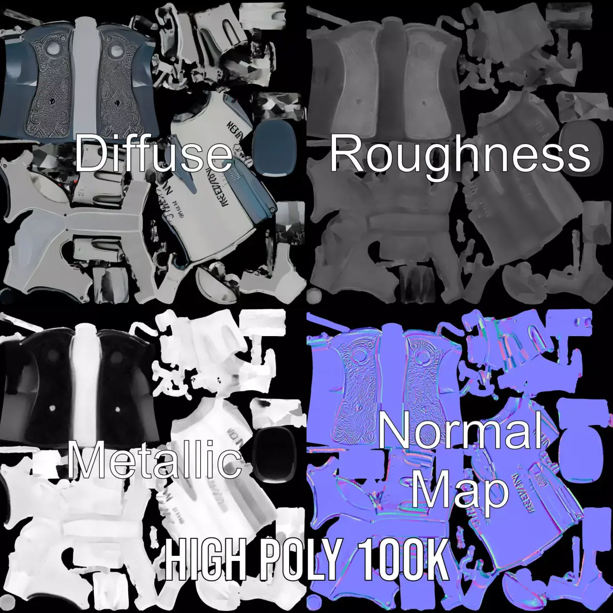 This Classic Steel Revolver model pack features a meticulously crafted firearm design ideal for historical reenactments, video game assets, and cinematic use. Each model has 3 levels of detail: low-poly (1000 triangles) for mobile, middle-poly (10,000 triangles) for environment, and high-poly (100,000 triangles), which allows for use in production rendering (such as 3ds Max, Maya, Cinema 4D, Blender, Vray/Corona/Cycles), game engines (Unity and Unreal compatible), and interactive presentations, providing a choice of detail based on the LOD System principle. High-quality textures are 4096x4096, including PBR, Diffuse, NormalMap, and reflection/roughness/metallic, suitable for any modern rendering engine. The model is accurately unwrapped with no overlapping UV. Perfect for enhancing realistic environments where attention to detail is paramount. If you like this model, please leave a comment and like it.