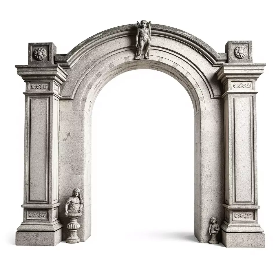 This 3D model features a classic stone arch design, adorned with intricate sculptures and detailed stone textures. Each model has 3 levels of detail: low-poly (1000 triangles for mobile), middle-poly (10,000 triangles for environment), and high-poly (100,000 triangles), which allows for the use of this model in production rendering (such as 3ds Max, Maya, Cinema 4D, Blender, V-Ray/Corona/Cycles, and all others), game engines (Unity and Unreal compatible), and interactive presentations, providing a choice of detail based on the LOD System principle.