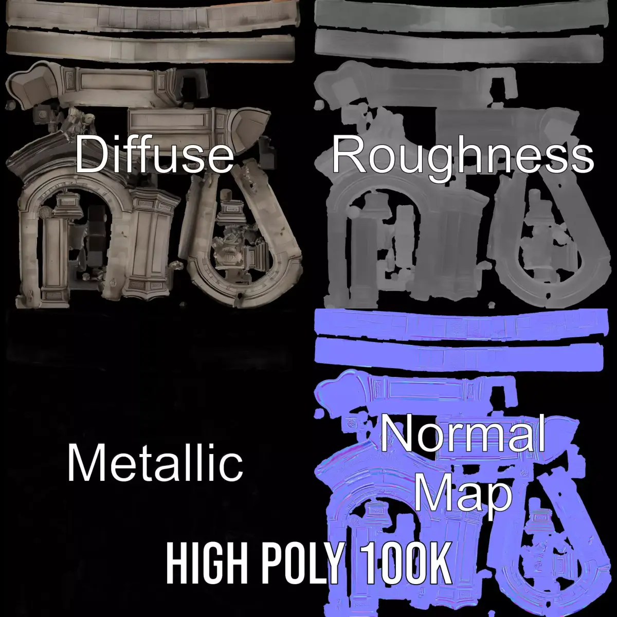 Ideal for historical themed environments, architectural visualizations, and game levels. The model's textures are PBR, Diffuse, NormalMap, and reflection/roughness/metallic, which are suitable for any modern rendering engine. All models accurately unwrapped and have no overlapping UVs. All textures are 4096*4096 in size.