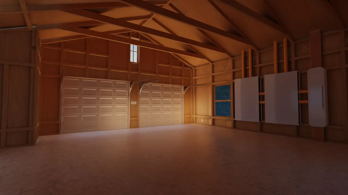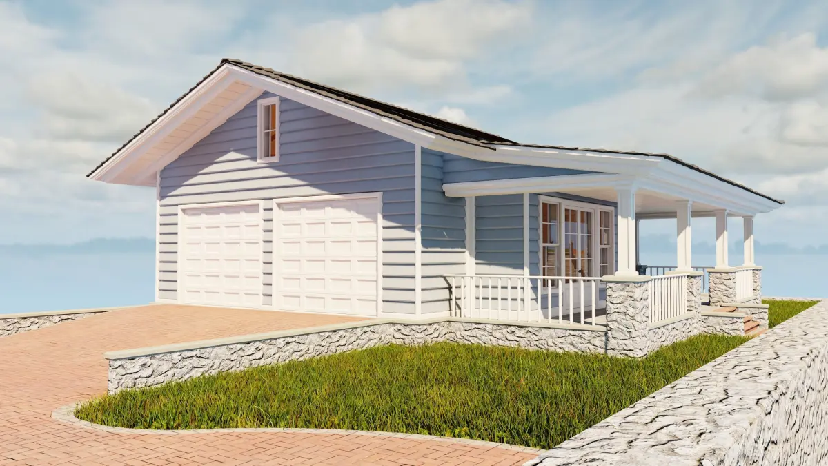 This is a 2 car garage featured in my classic style porch house. In front of the garage there is a large driveway with space for more cars.