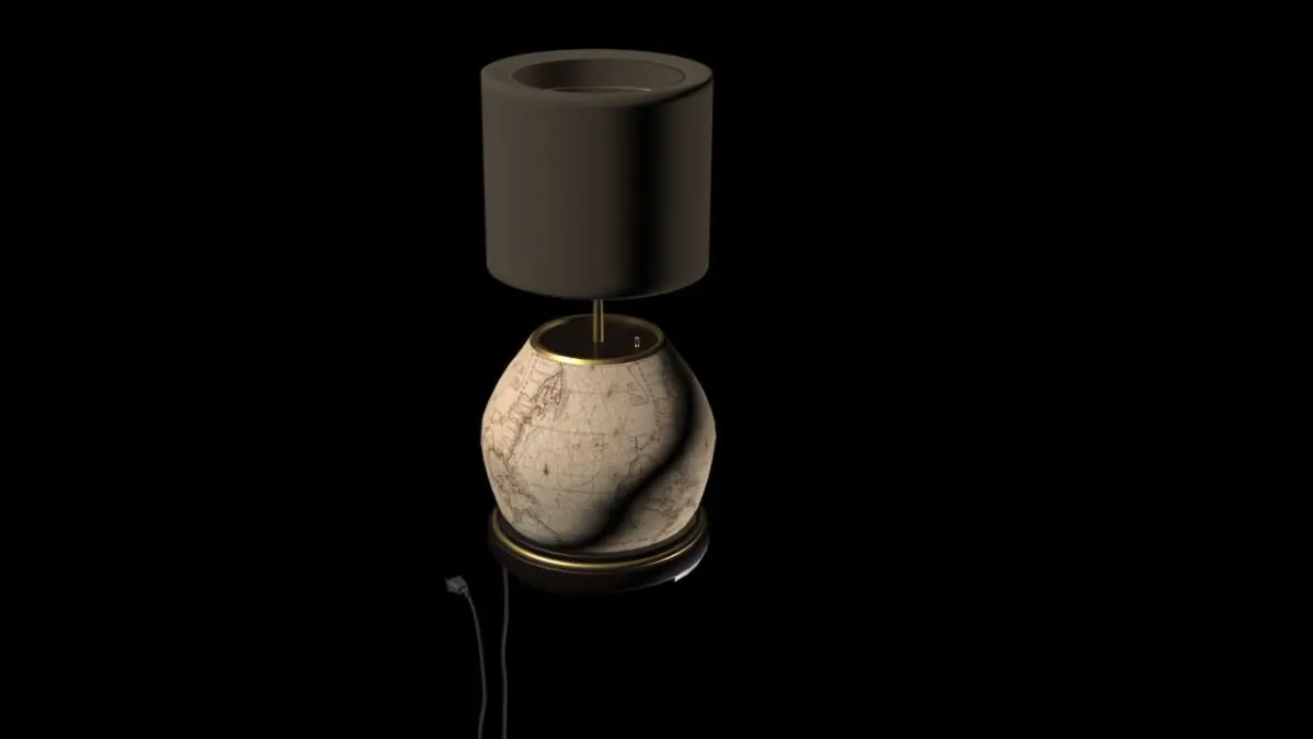 Classic Table LampBasic interior Table Top Lamp with shadewith world map-wood and copper fittingsnative 3DS max 2015 w/mental ray renderingIt's Free so like if you will