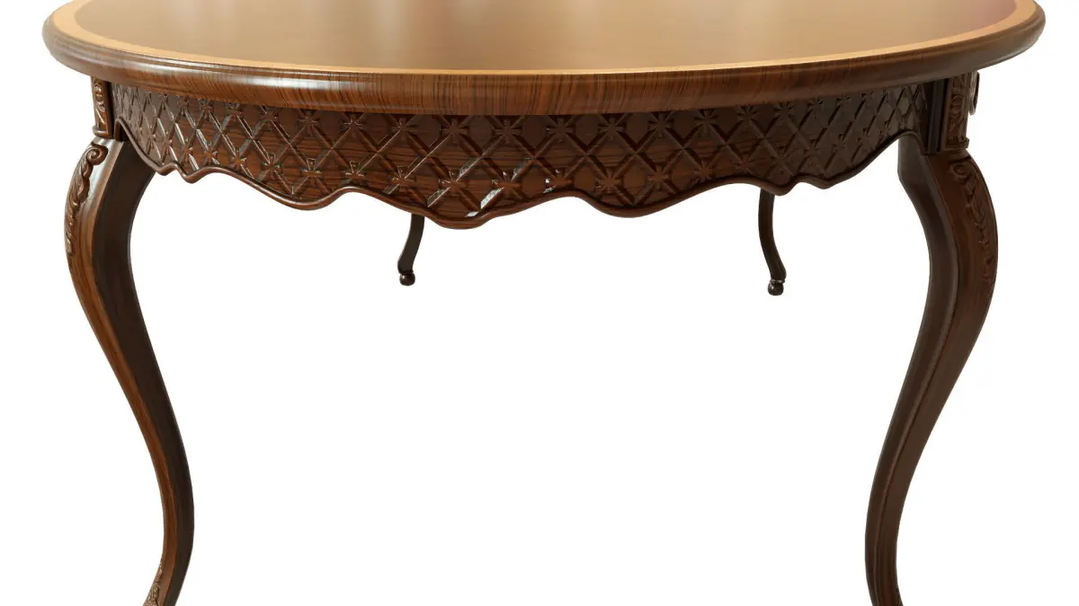 Classic table with carvings 3D model of a classic table made of solid wood.Well suited for classic interiors of living rooms, cabinets,billiard rooms, hallways, kitchens, meeting rooms. This quality model will beContribute to the details and realism of your games, movies