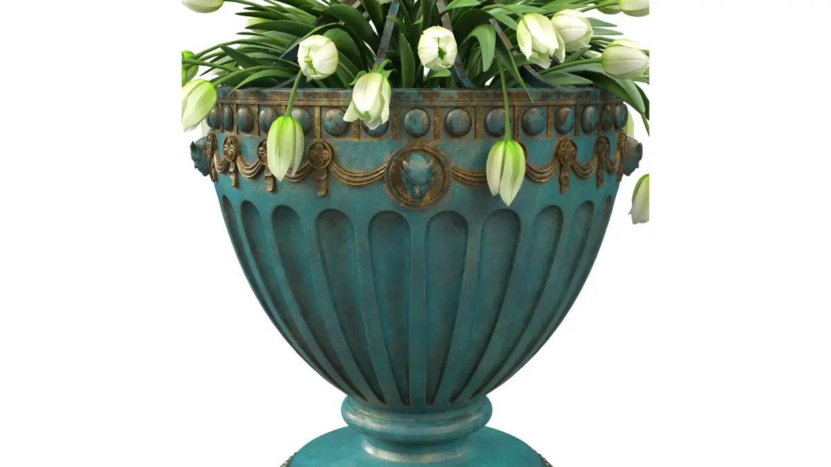 Classic vase with decor and gold patina and scuffs.