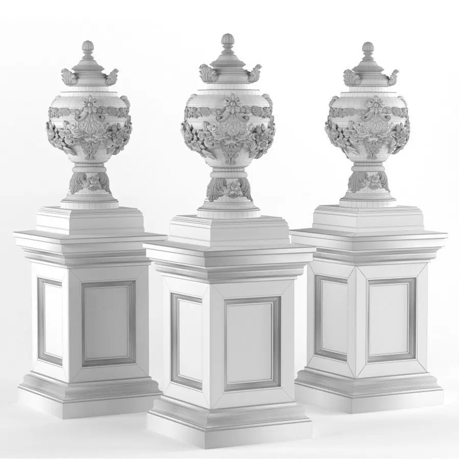 Classic-style vases on a pedestal for decoration of the facade of the exterior and interior:
