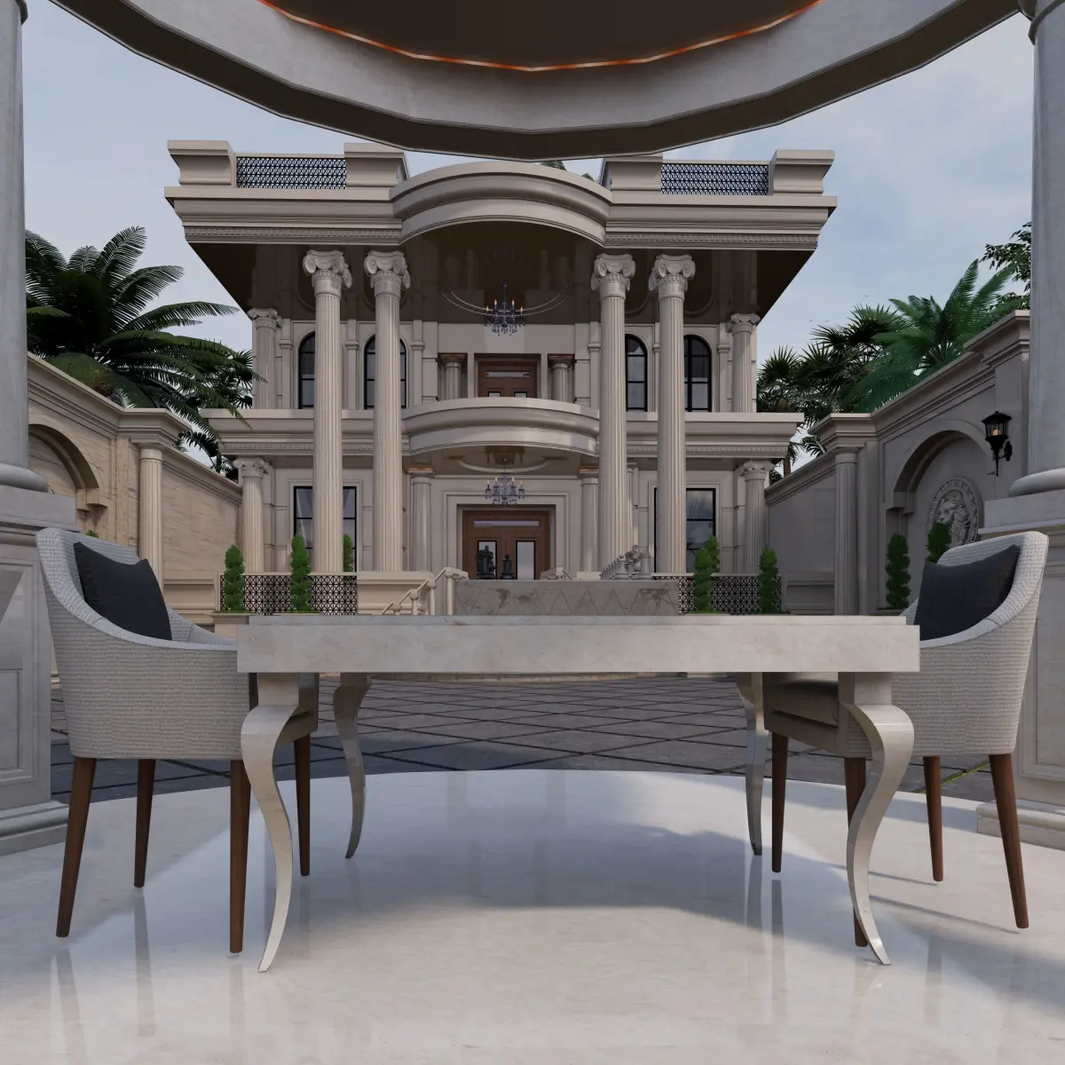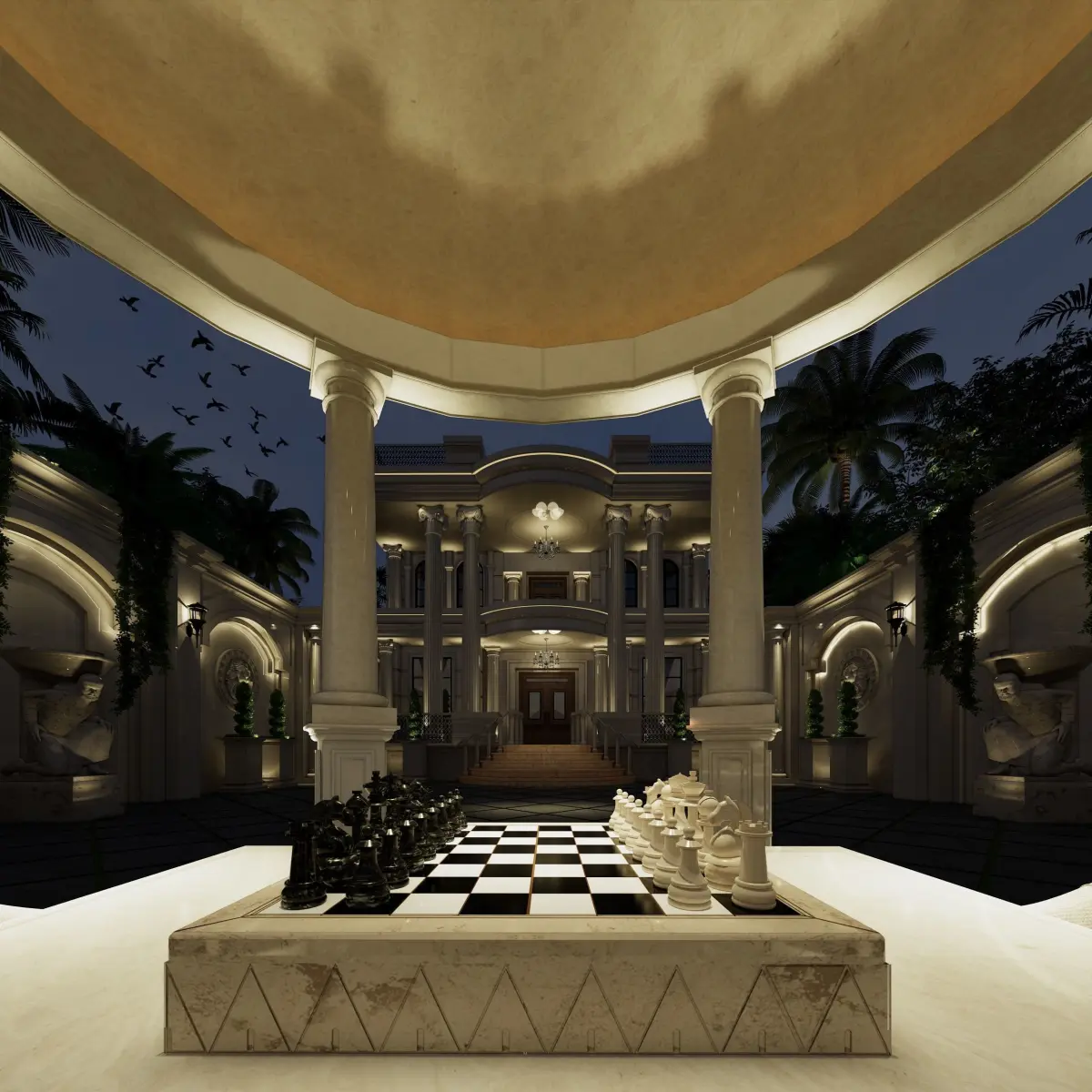 Experience the modeling of the attractive facade of a classic villa with the help of an accurate chess game model and a unique space of high-quality materials and professional lighting.Modeling with Sketchup 2020 and rendering with Inscape 5