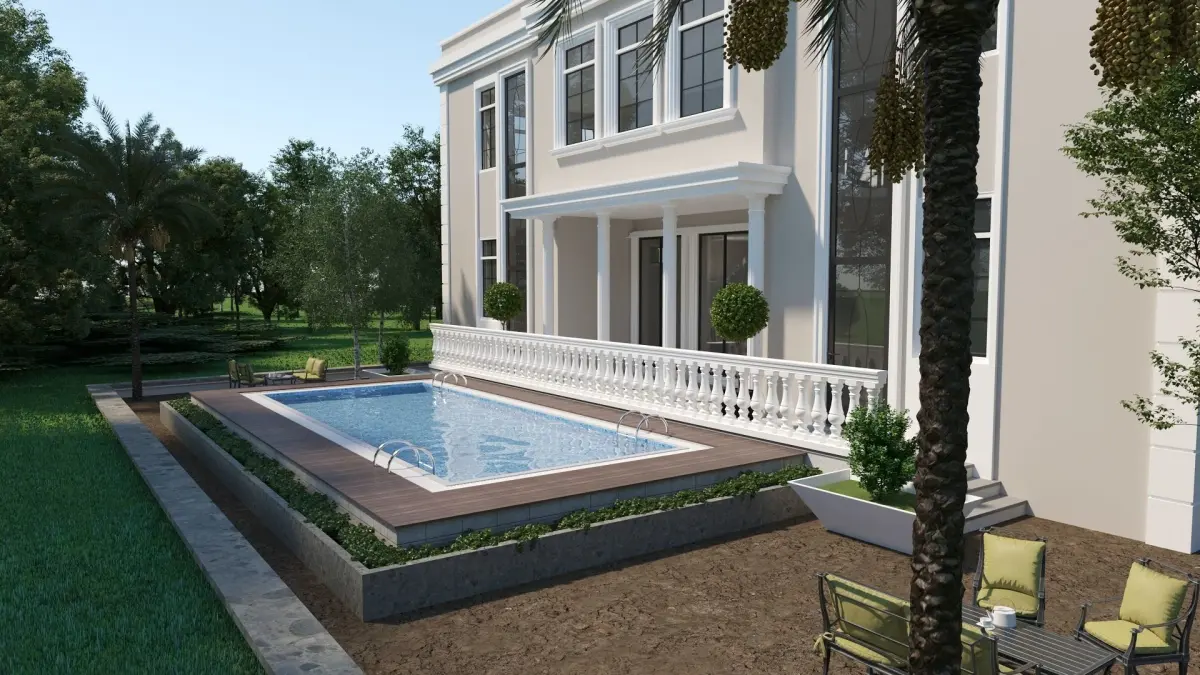 A High Quality Photo Real model for a Classic Villa designed by professional architects, DWG floor plans are included. will enhance detail and realism to any of your rendering projects. The model has a fully textured, detailed design, Rendered in 3ds max 2022 with corona renderer and with 3d grass