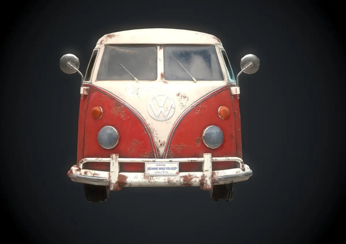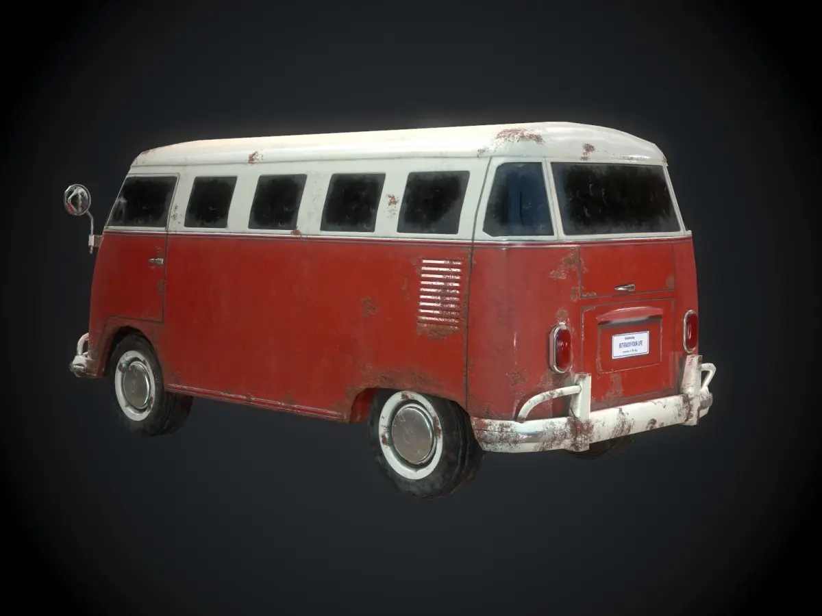 Classic VW Bus asset for games. This model was originally created from high poly model and details were baked to optimized low poly mesh in Substance Painter.Clean mostly quads mesh with no co-planar faces, isolated vertices or n-gons. 343 tris 3243 quads.