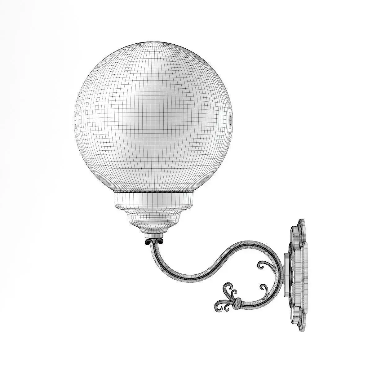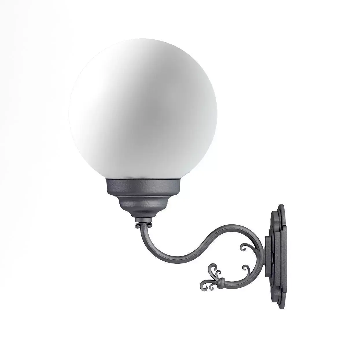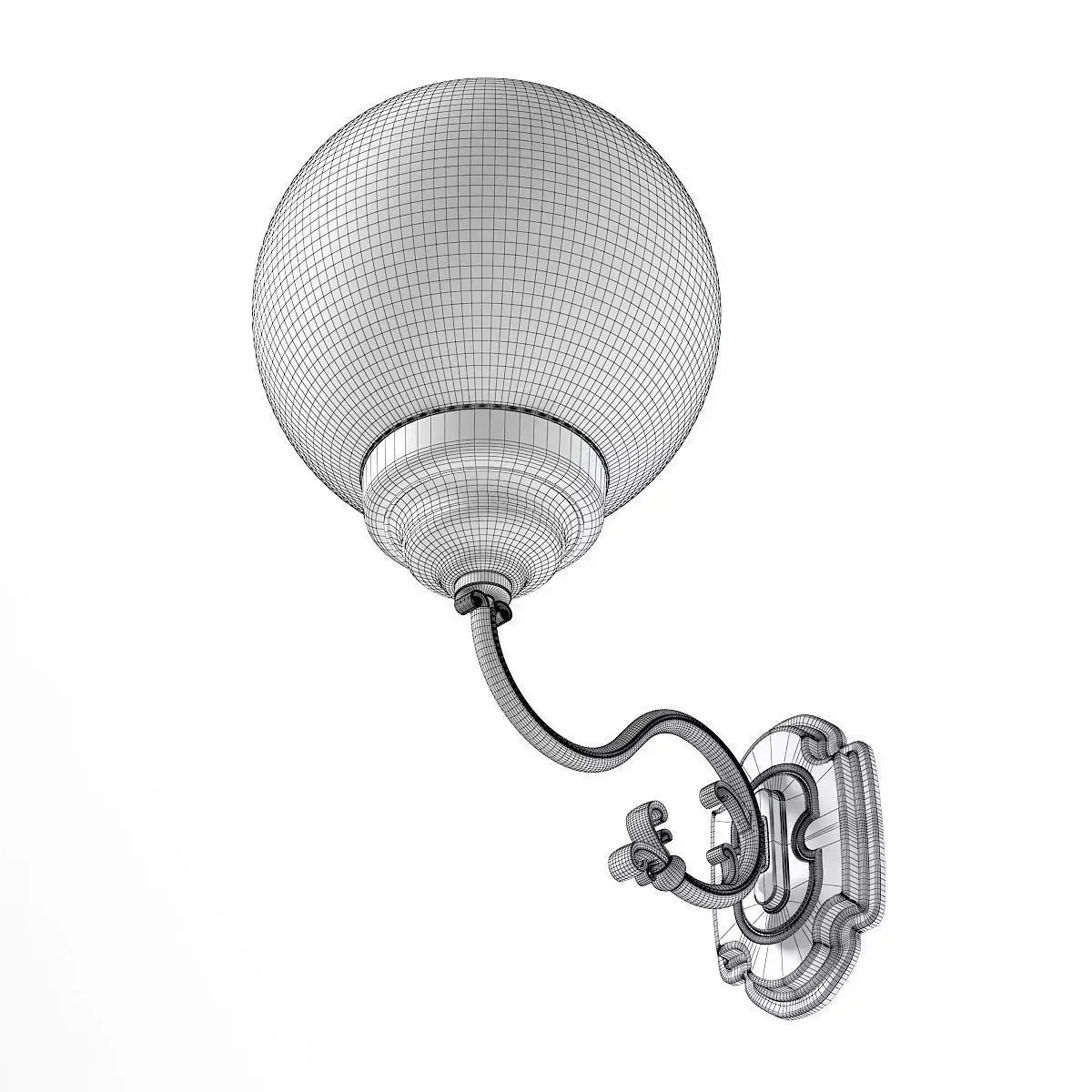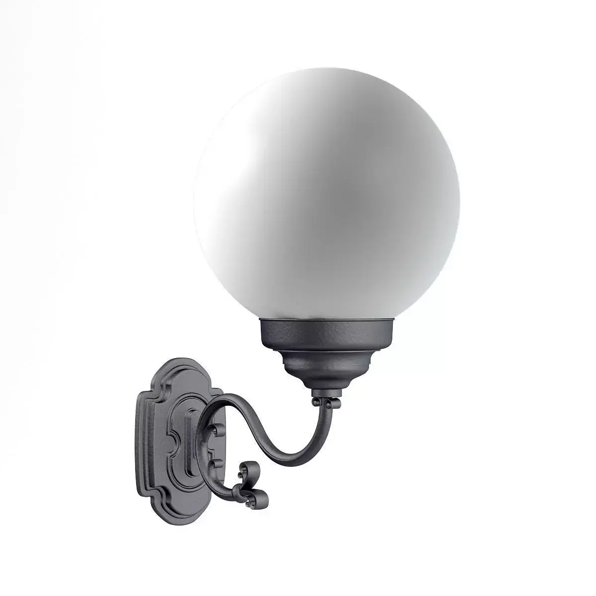 3d model of classic wall exterior lamp with white spherical glass shade. Compatible with 3ds max 2010, Cinema 4D R15 and many more.