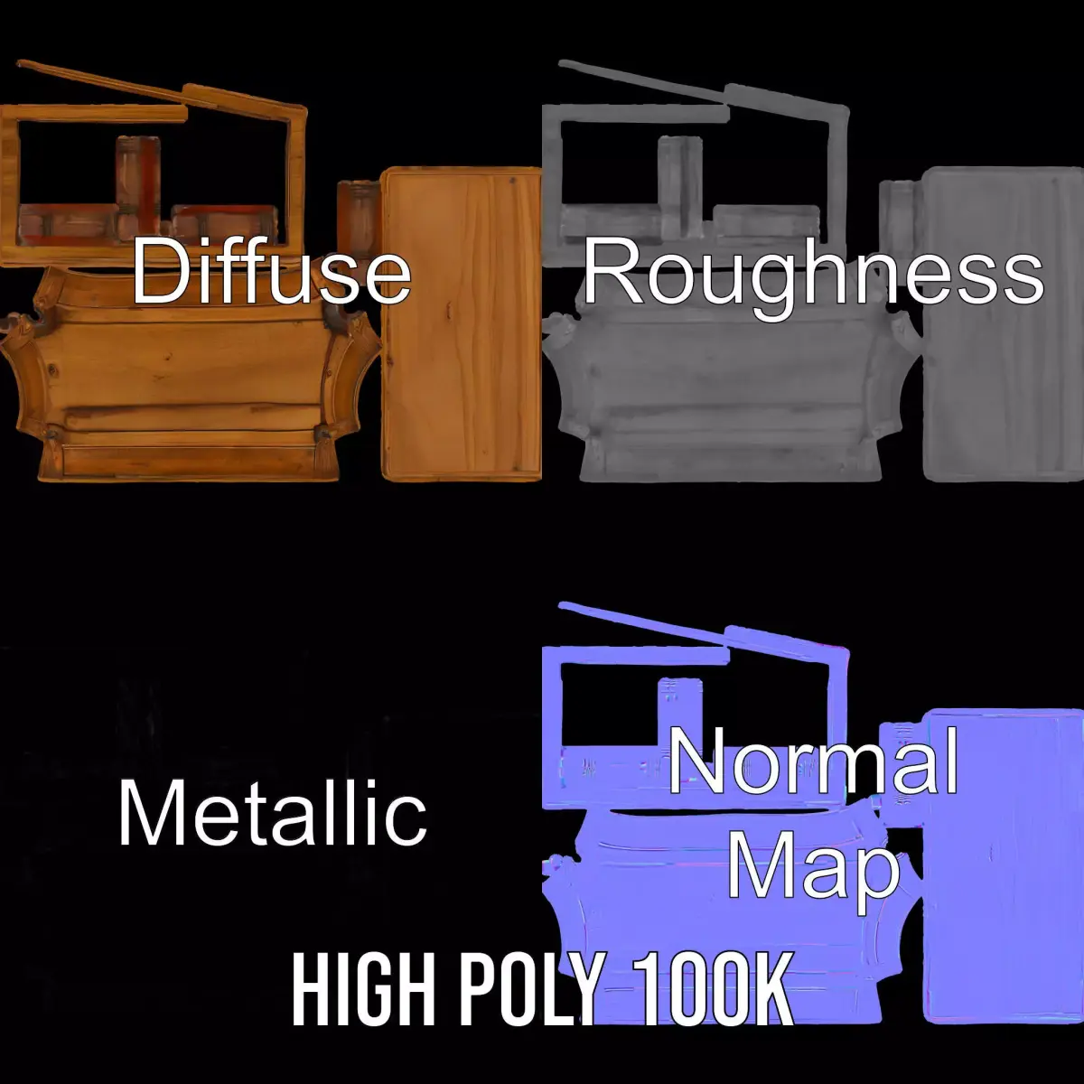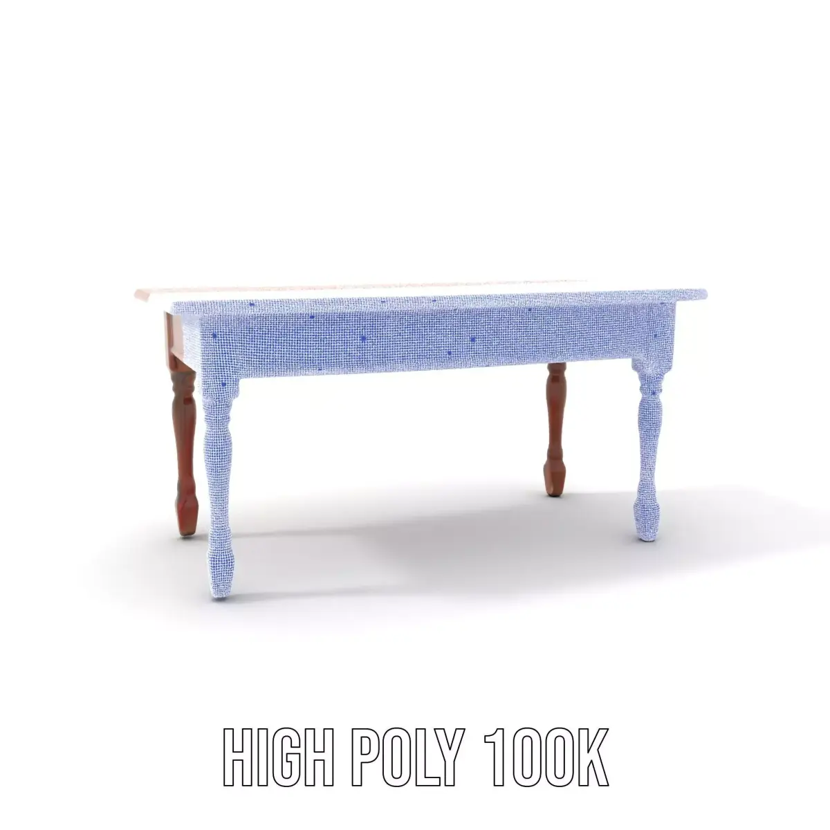 This classic walnut table model is perfect for enhancing the aesthetics of any interior scene, providing a touch of elegance with its warm wooden tones and traditional design. It's ideal for use in architectural visualizations, virtual home staging, or interactive decor presentations. Each model has 3 levels of detail: low-poly (1000 triangles for mobile), middle-poly (10,000 triangles for environment), and high-poly (100,000 triangles), making it suitable for production rendering (such as 3ds Max, Maya, Cinema4D, Blender, Vray/Corona/Cycles and all others), game engines (Unity and Unreal compatible), and interactive presentations, providing a choice of detail based on the LOD System principle. The model's textures are PBR, Diffuse, NormalMap, and reflection/roughness/metallic, which are suitable for any modern rendering engine. All models are accurately unwrapped and have no overlapping UVs. All textures are 4096*4096 in size. Please like and leave a comment for the model if you enjoyed it.
