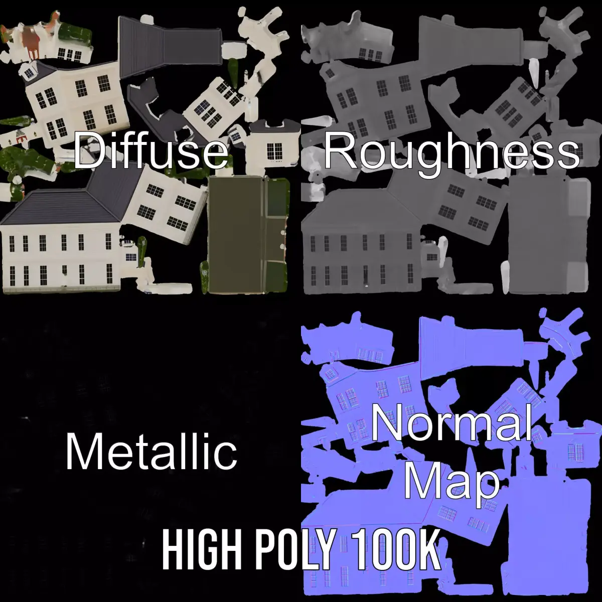 This Classic White Mansion model pack presents an elegant and timeless architectural design perfect for high-end neighborhood visualizations, interactive presentations, and animation scenes. Each model has 3 levels of detail: low-poly (1000 triangles for mobile), middle-poly (10,000 triangles for environment), and high-poly (100,000 triangles), which allows for the use of this model in production rendering with software such as 3ds Max, Maya, Cinema 4D, and Blender; game engines such as Unity and Unreal; and interactive presentations, providing a choice of detail based on the LOD system principle. The model's textures are PBR, Diffuse, NormalMap, and reflection/roughness/metallic, which are suitable for any modern rendering engine. All models are accurately unwrapped and have no overlapping UVs. All textures are 4096*4096 in size. If you enjoyed this model, please like and leave a comment!