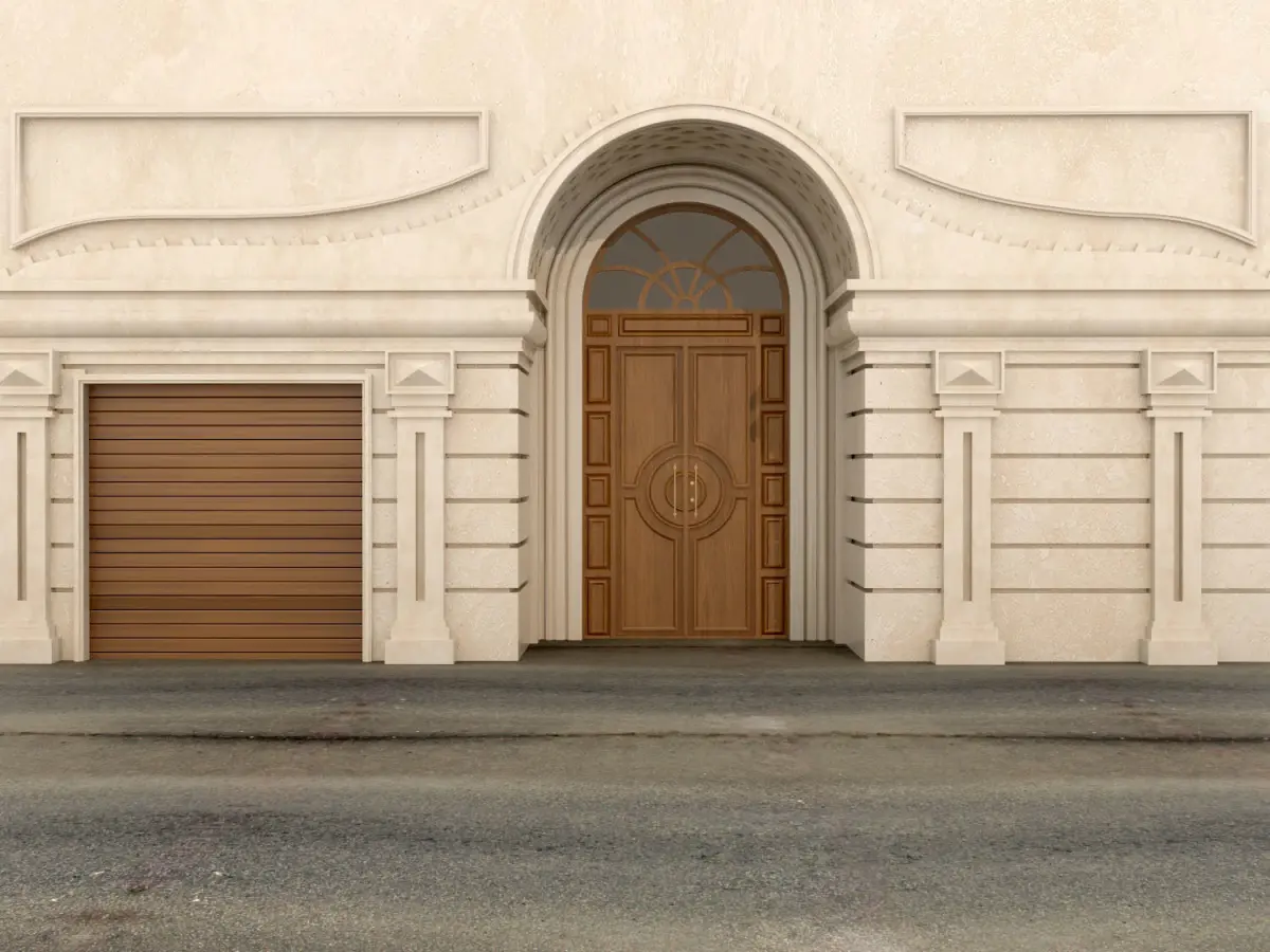 HomeCatalogClassic wood door and enetrance with travertin stone 3D model