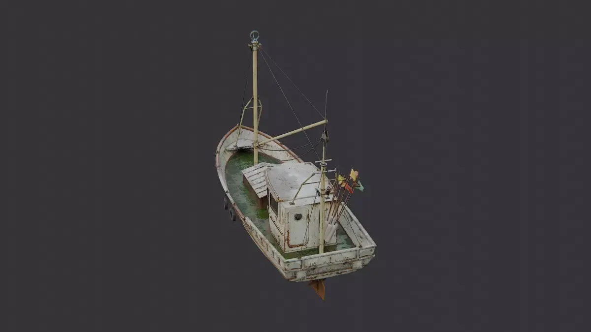 Beautifully modeled classic wooden fishing boat with a compact cabin and rigging. The hull shows weathered wood texture and painted accents for an authentic maritime feel. Suitable for coastal scenes, historical docks, and nautical animations. Includes UV mapping and a single material for efficient rendering in scenes.
