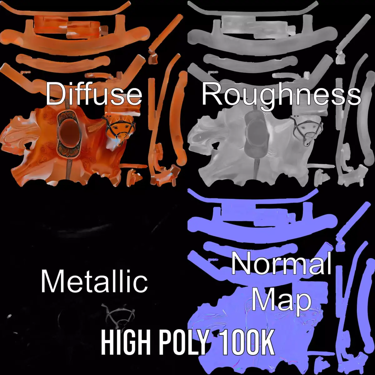This classic wooden rocking horse model captures the elegance and charm of traditional children's toys. Its intricate design and carved details make it ideal for nostalgic scenes, product visualization, and children's animations. Each model has 3 levels of detail: low-poly (1000 triangles for mobile), middle-poly (10,000 triangles for environment), and high-poly (100,000 triangles), which allows for the use of this model in production rendering (such as 3ds Max, Maya, Cinema4D, Blender, Vray/Corona/Cycles and all others), game engines (Unity and Unreal compatible), and interactive presentations, providing a choice of detail based on the LOD System principle. The model's textures are PBR, Diffuse, NormalMap, and reflection/roughness/metallic, which are suitable for any modern rendering engine. All models accurately unwrapped and have no overlapping UV. All textures are 4096*4096 in size. If you like this model, please leave a comment and like!