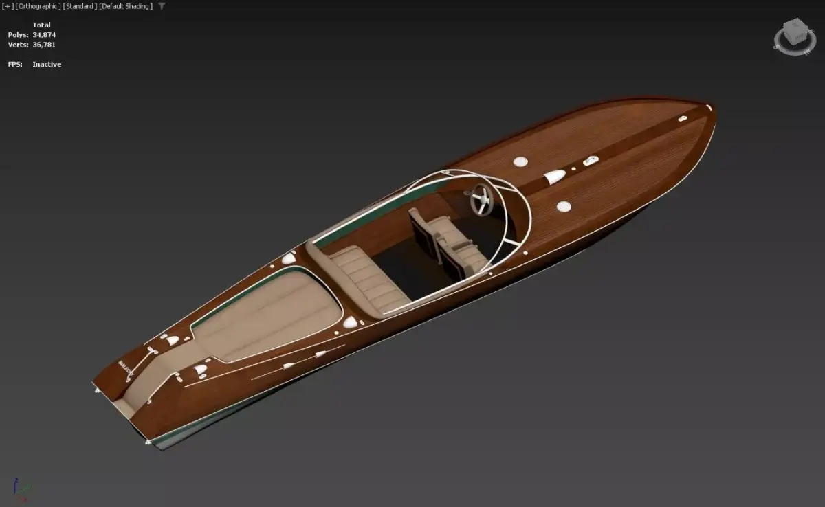 High-quality 3D model of a classic wooden runabout speedboat inspired by iconic Italian designs like the Riva Aquarama, perfect for vintage marine scenes, luxury waterfront settings, games, animations, or visualizations. This elegant mahogany-hulled powerboat features exquisite varnished wood planking, chrome accents, and a timeless retro aesthetic that evokes mid-century glamour on the water.Key features: