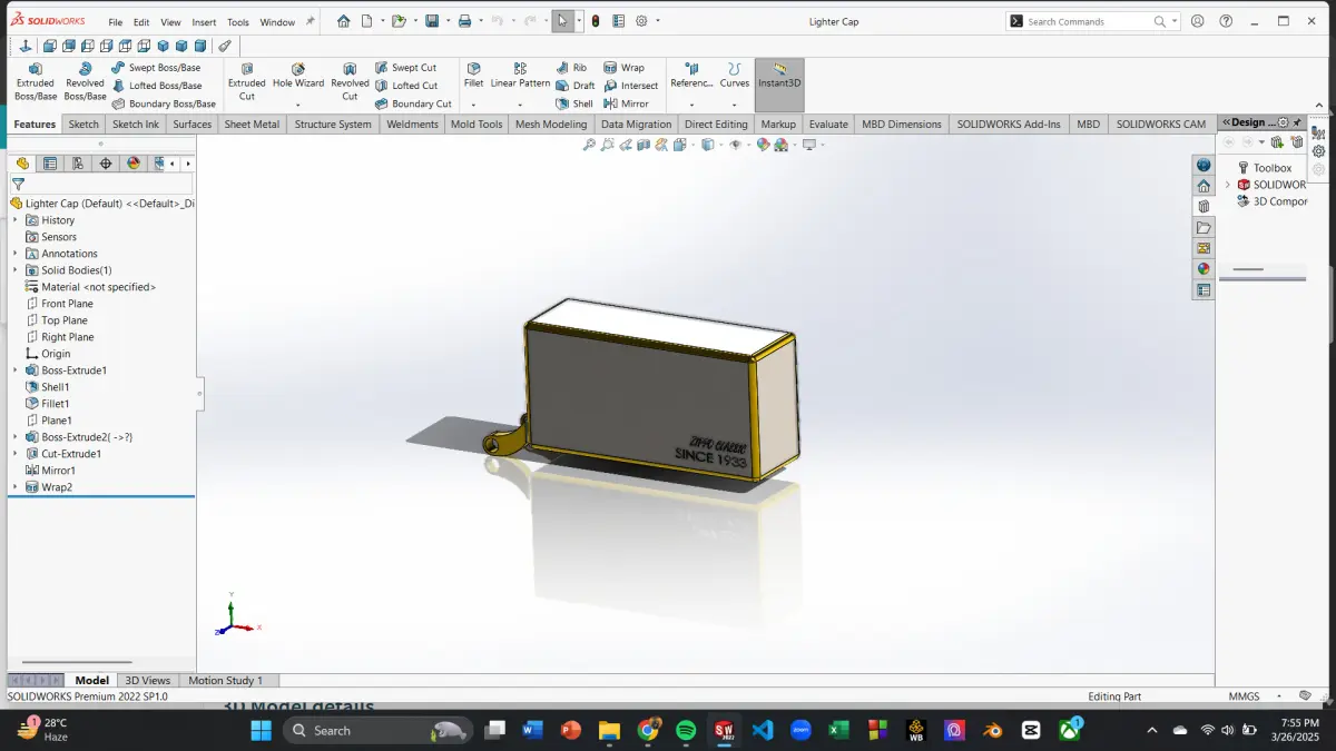 Description:-Highly detailed classic Zippo lighter 3D model designed in SOLIDWORKS