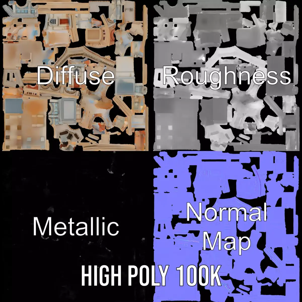 This meticulously designed Classical Arch Building model pack presents a stunning representation of traditional architecture with elegant arches and detailed textures. Created with historical accuracy, it's perfect for use in architectural visualization, educational simulations, and gaming environments. Each model has 3 levels of detail: low-poly (1000 triangles for mobile), middle-poly (10,000 triangles for environment), and high-poly (100,000 triangles), which allows for the use of this model in production rendering (such as 3ds Max, Maya, Cinema4D, Blender, Vray/Corona/Cycles and all other), game engines (Unity and Unreal compatible), and interactive presentations, providing a choice of detail based on the LOD System principle. The model's textures are PBR, Diffuse, NormalMap, and reflection/roughness/metallic, which are suitable for any modern rendering engine. All models accurately unwrapped and have no overlapping UV. Textures are 4096*4096 in size. If you enjoyed this model, please like and leave a comment.