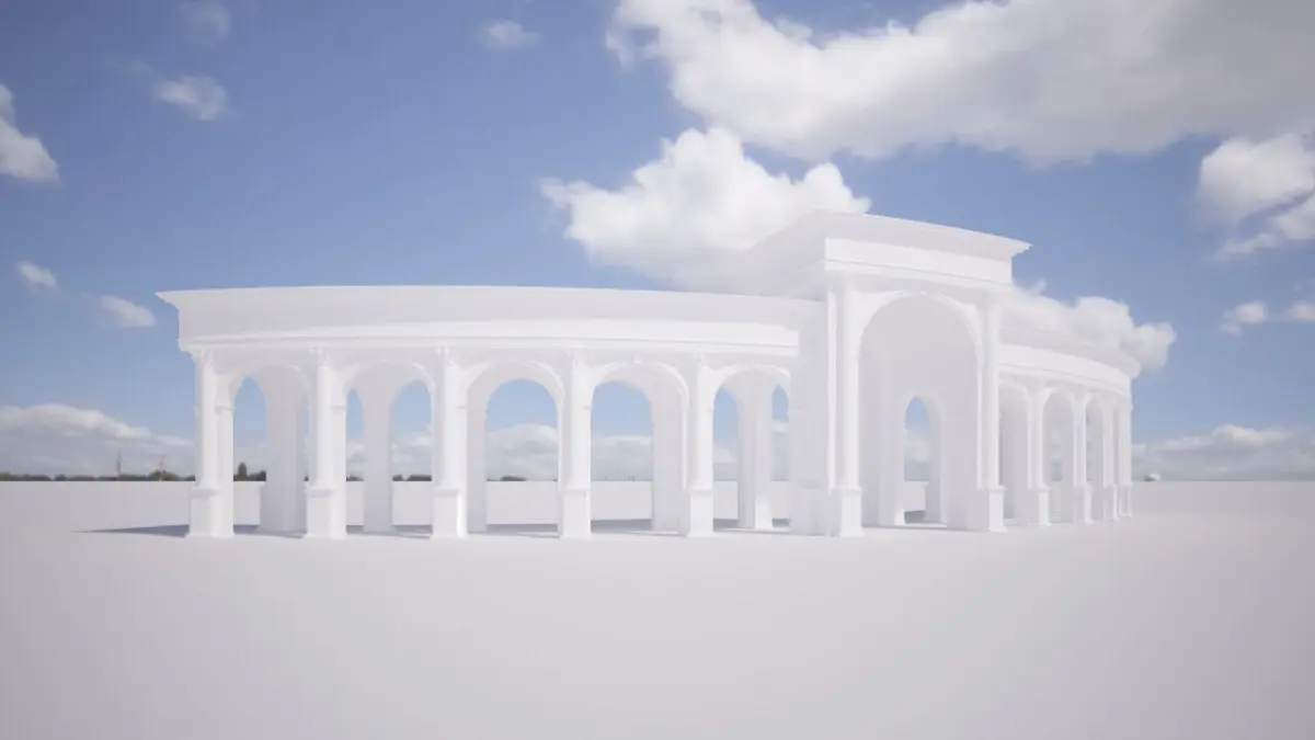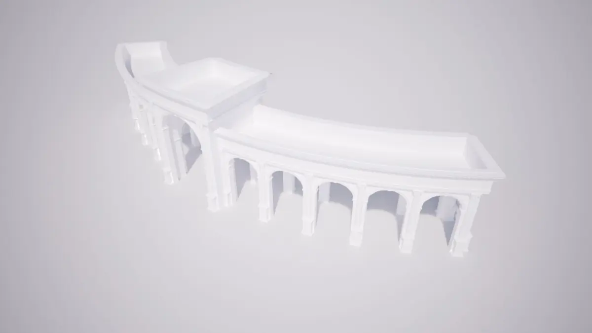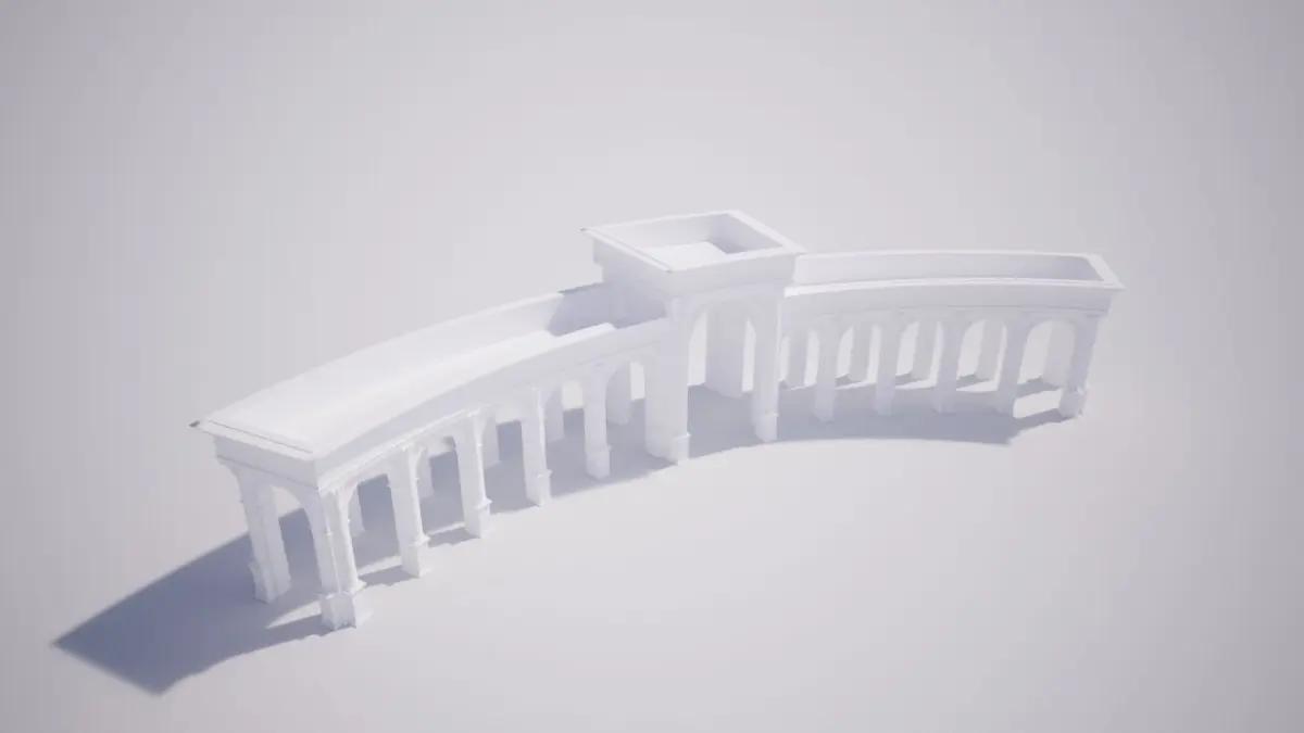 This is a white classical arch gate that is designed for an entrance gate of luxury residential town in French classical architecture style. The shape of gate is combine of curve base line and arches for the corridor with tiles roof