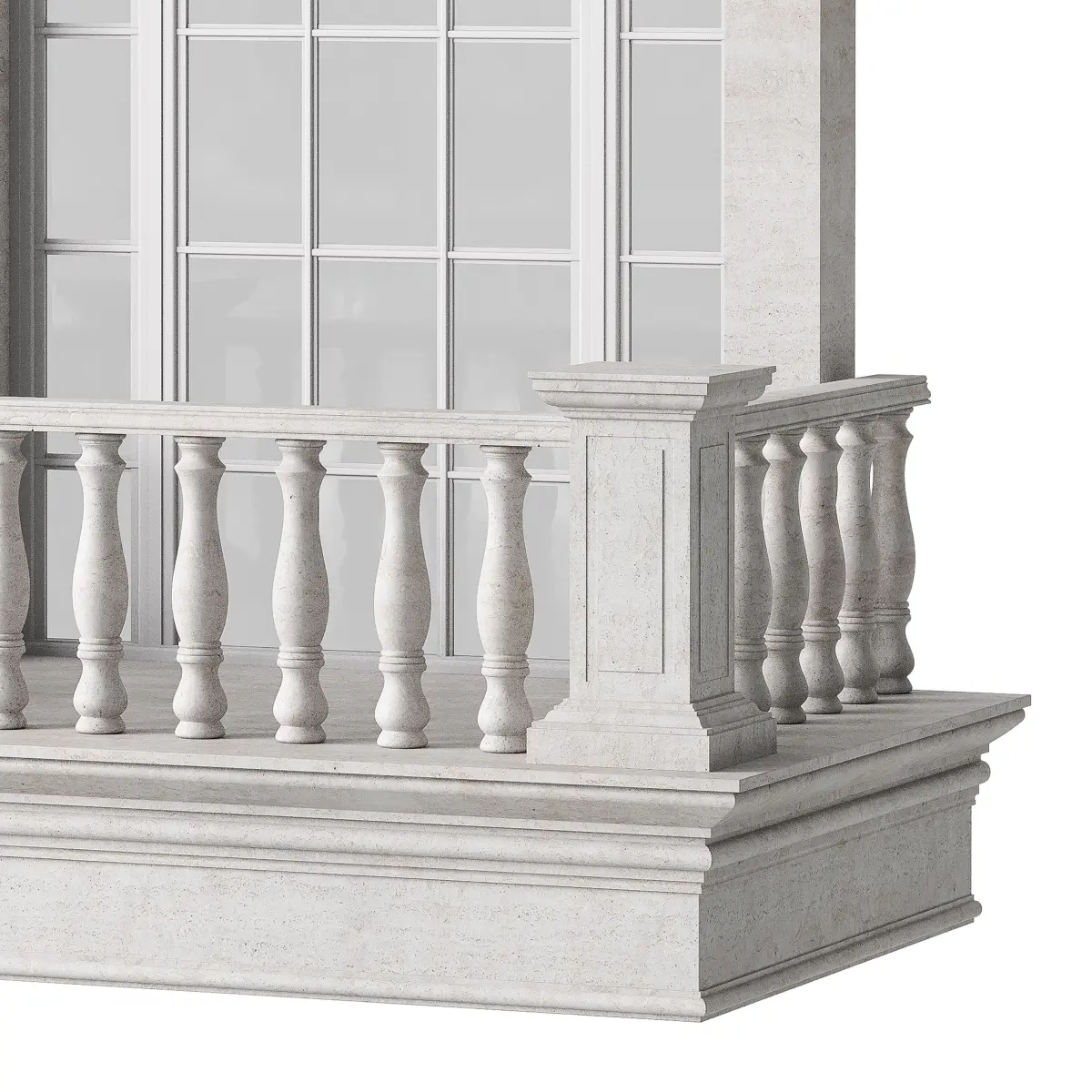 This is a classic architectural model made of marble, designed for 3D visualization and architectural rendering. Featuring an arched window and marble balusters with straightforward detailing, it adds a clean and elegant touch to historical or classical scenes. The design is accurate and practical, making it easy to use in various projects.
