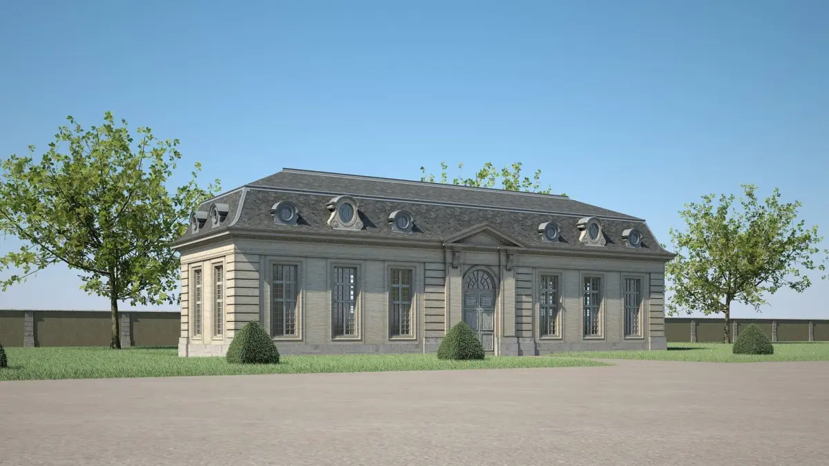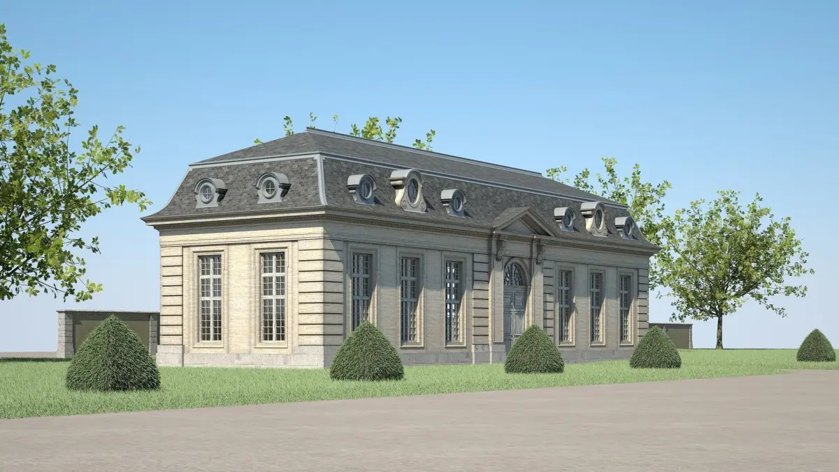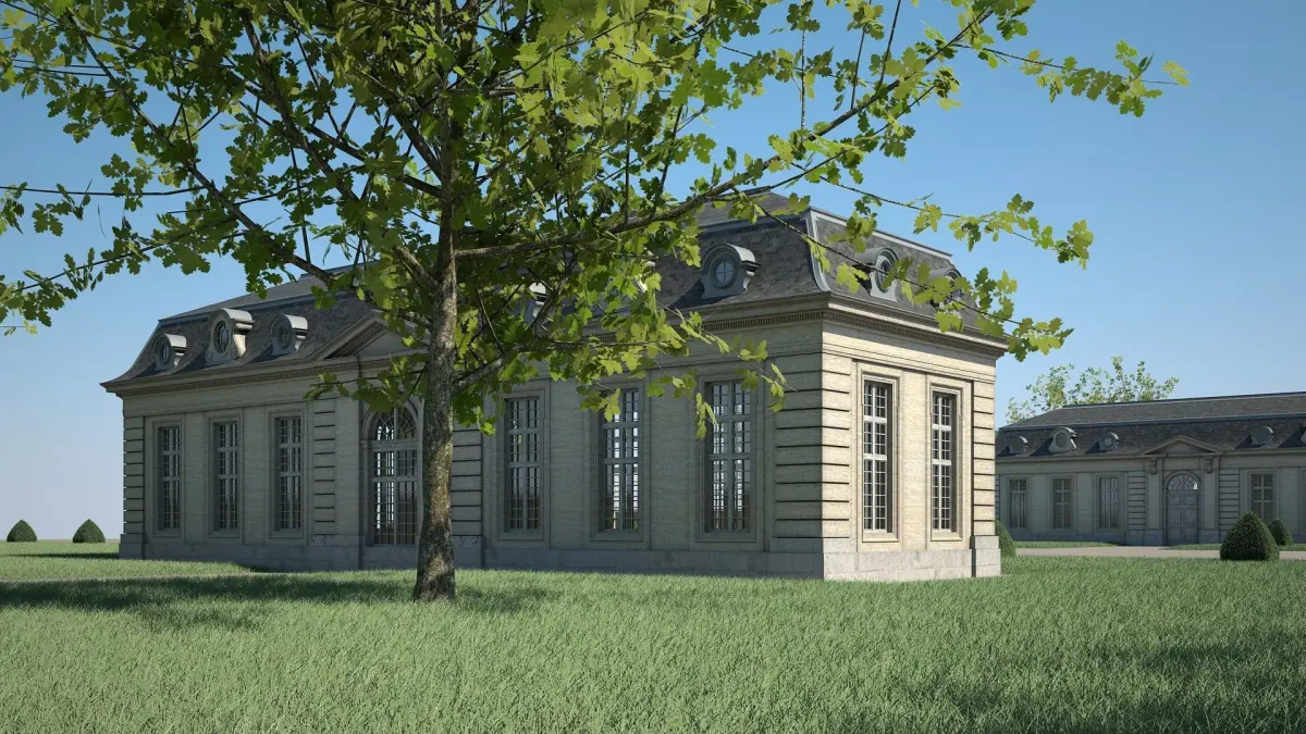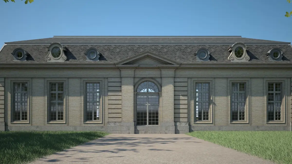 Detailed 3D model of a classical style building.
